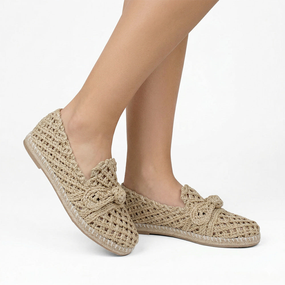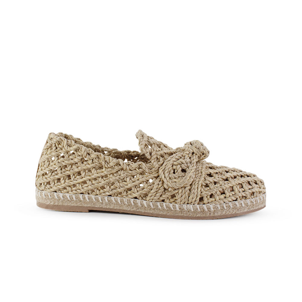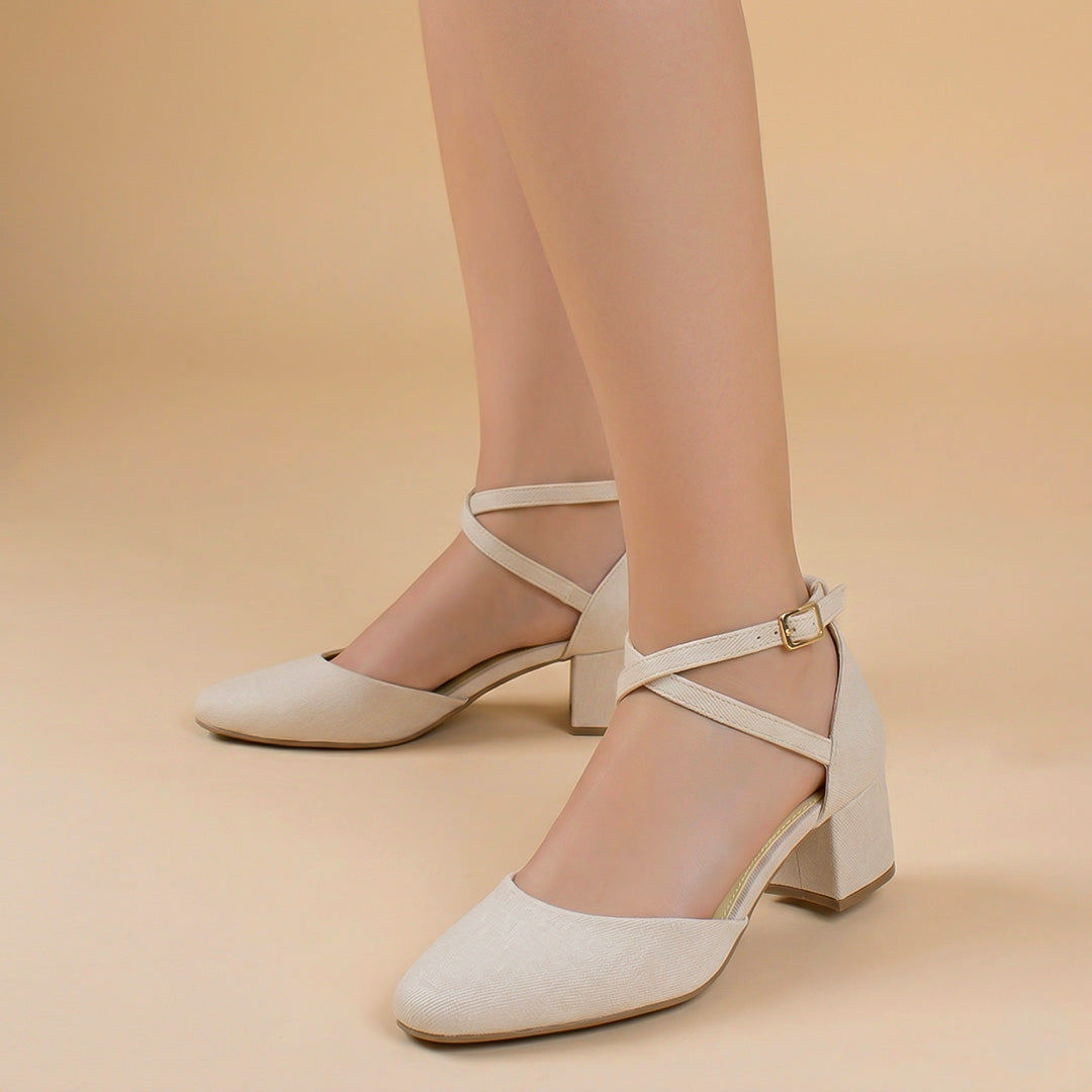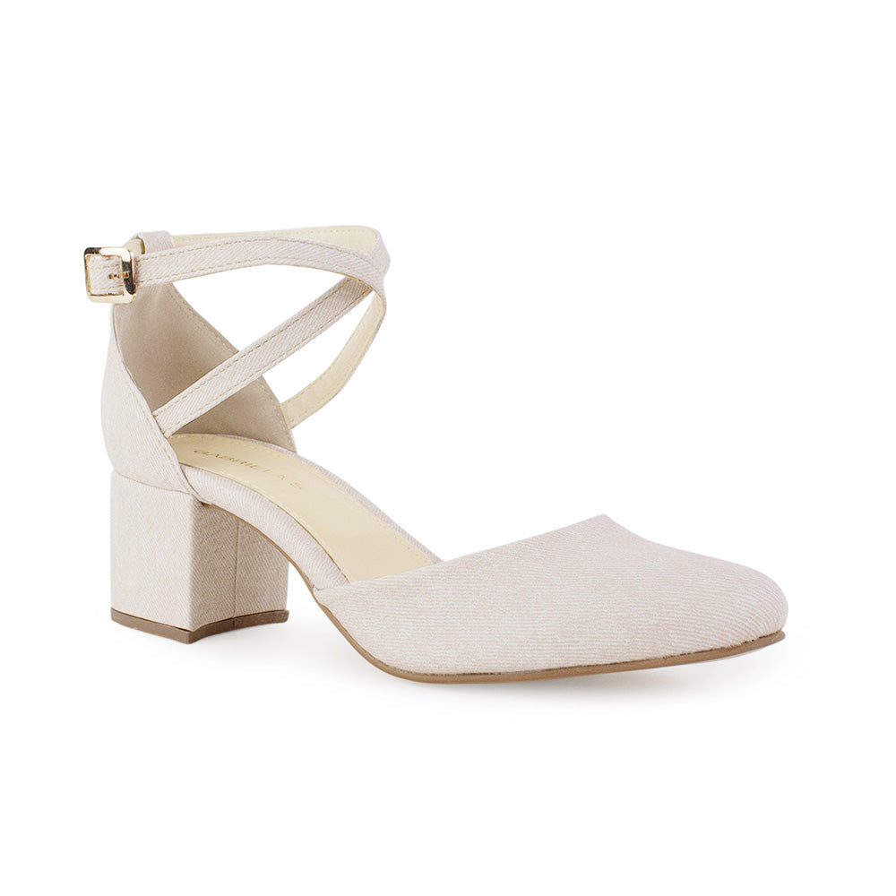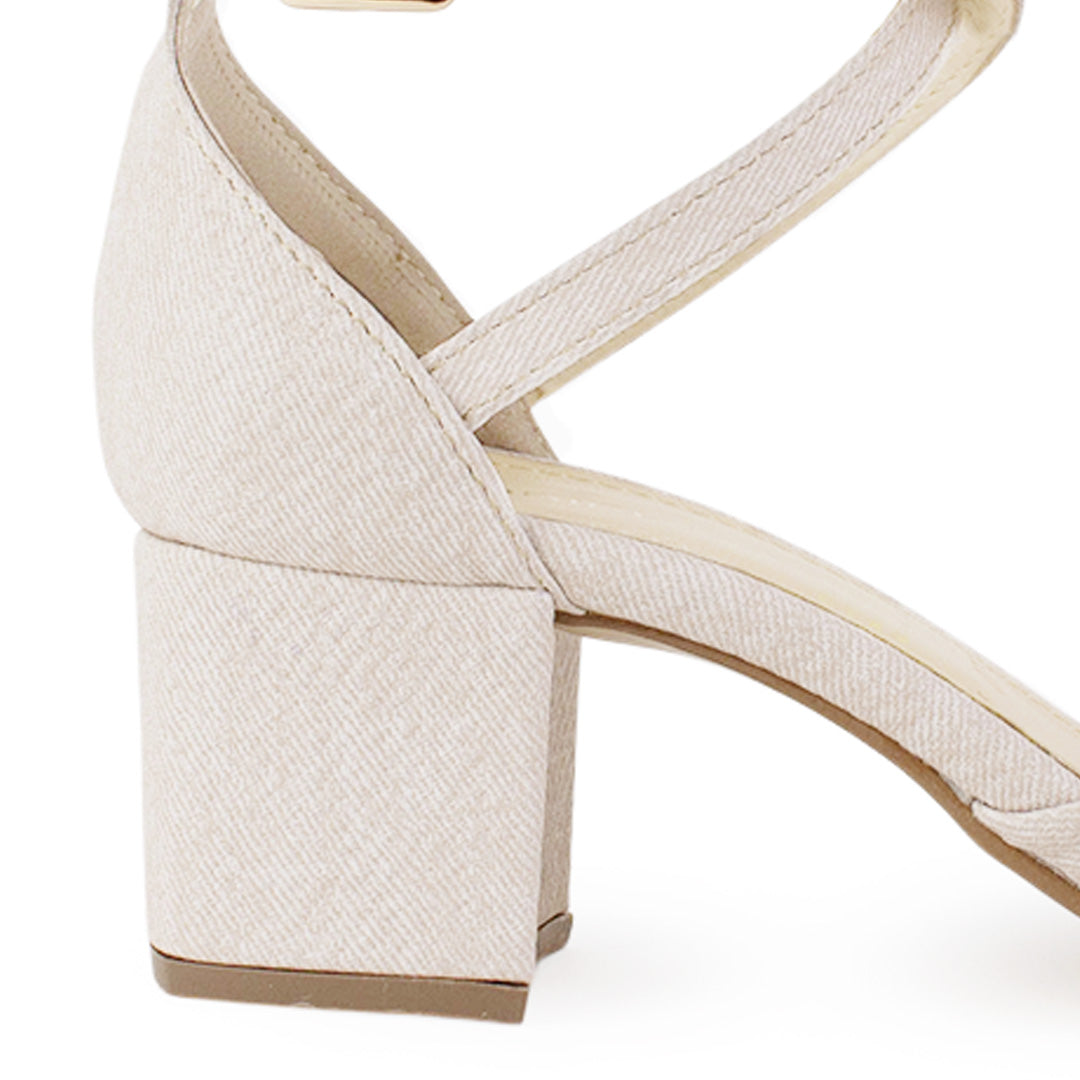 Zapatilla Beige Stiletto Tacon Bajo Puntal Pulseras Cruzadas 2640114