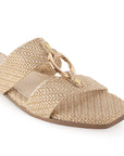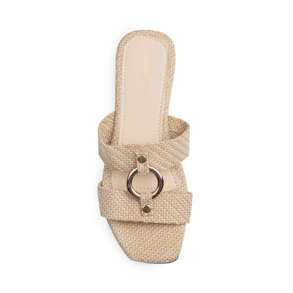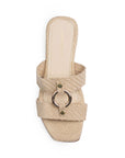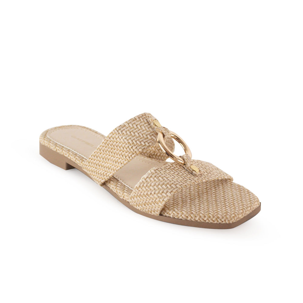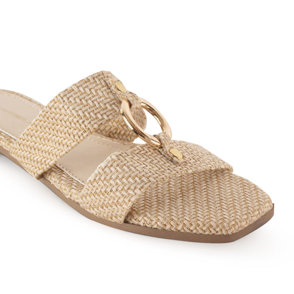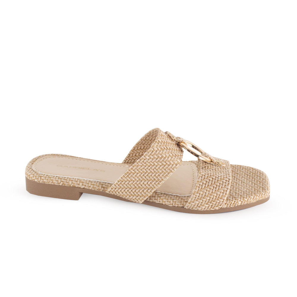 Sandalia Beige Baja Dama Moda Doble Tira Adorno Herraje Casual 1220353