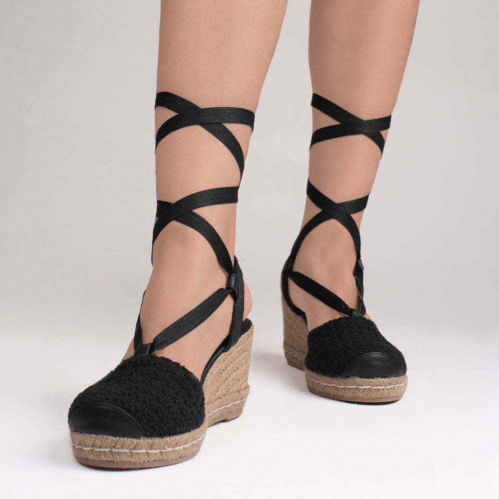 Alpargatas Negro Mujer Plataforma Casual Moda Cintas Ajustables 1710603
