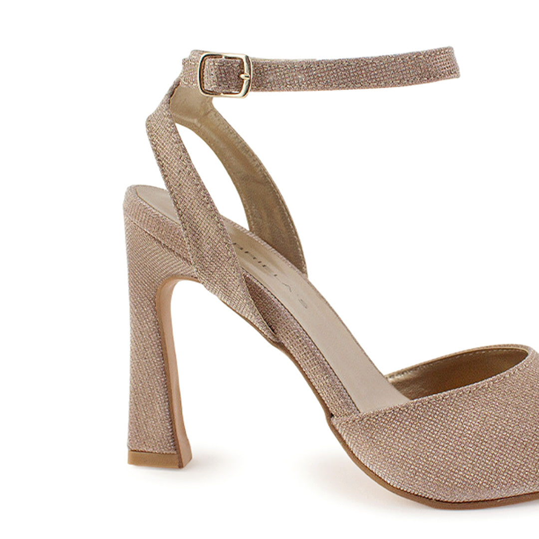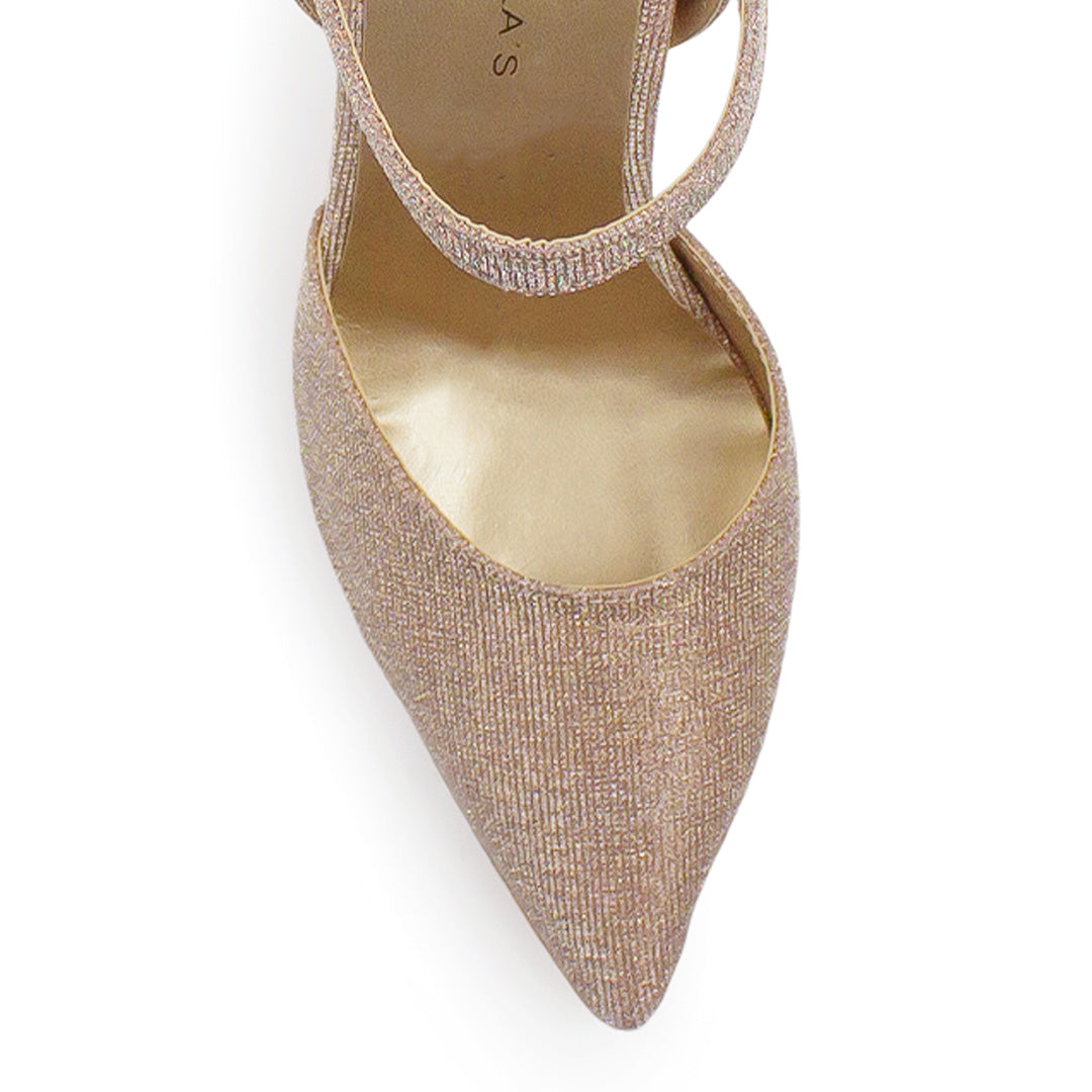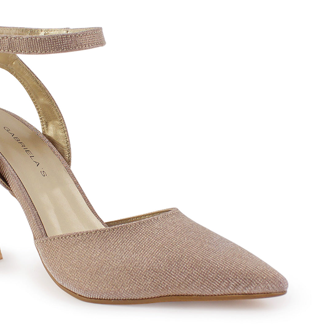 Zapatilla Oro Puntal Dama Tacon Delgado Pulsera Moda Formal 2000107