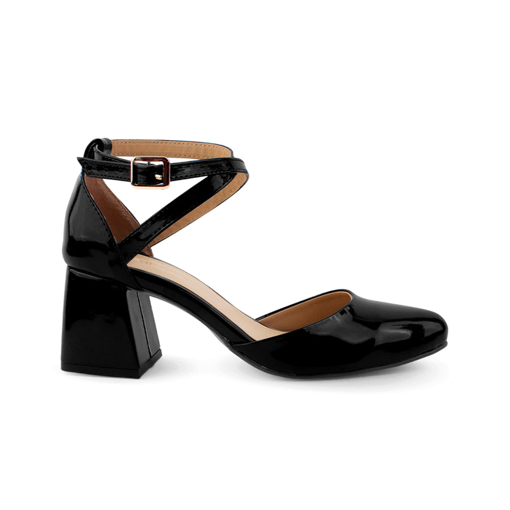 Zapatilla Negro Mujer Tacon Acampanado Moda Puntal Formal Casual 2640098