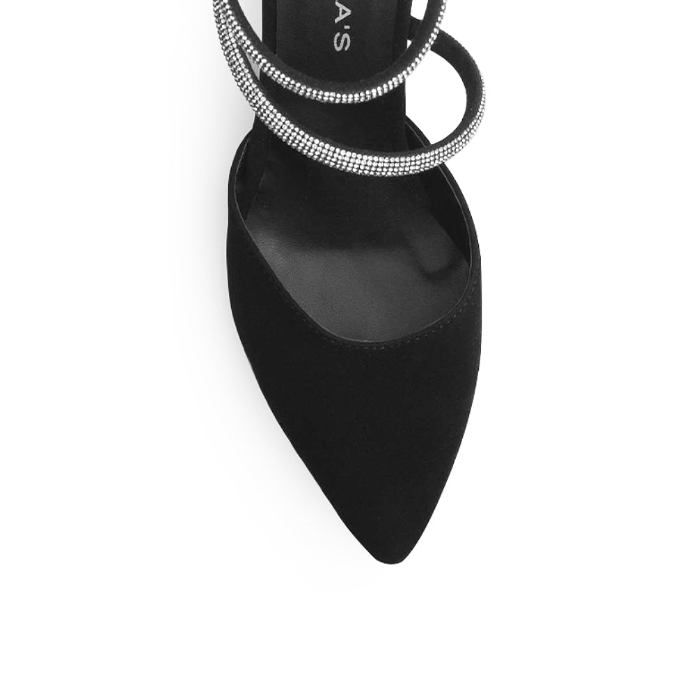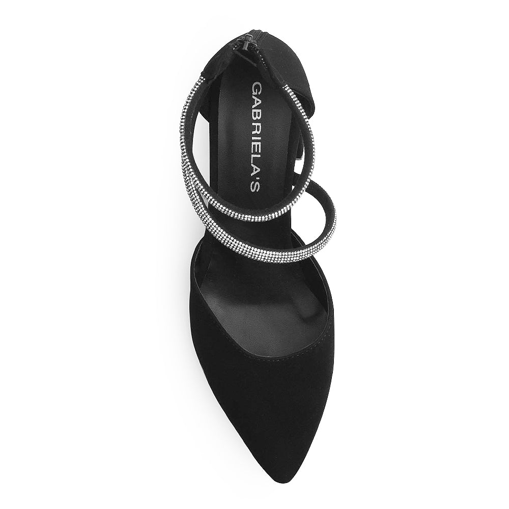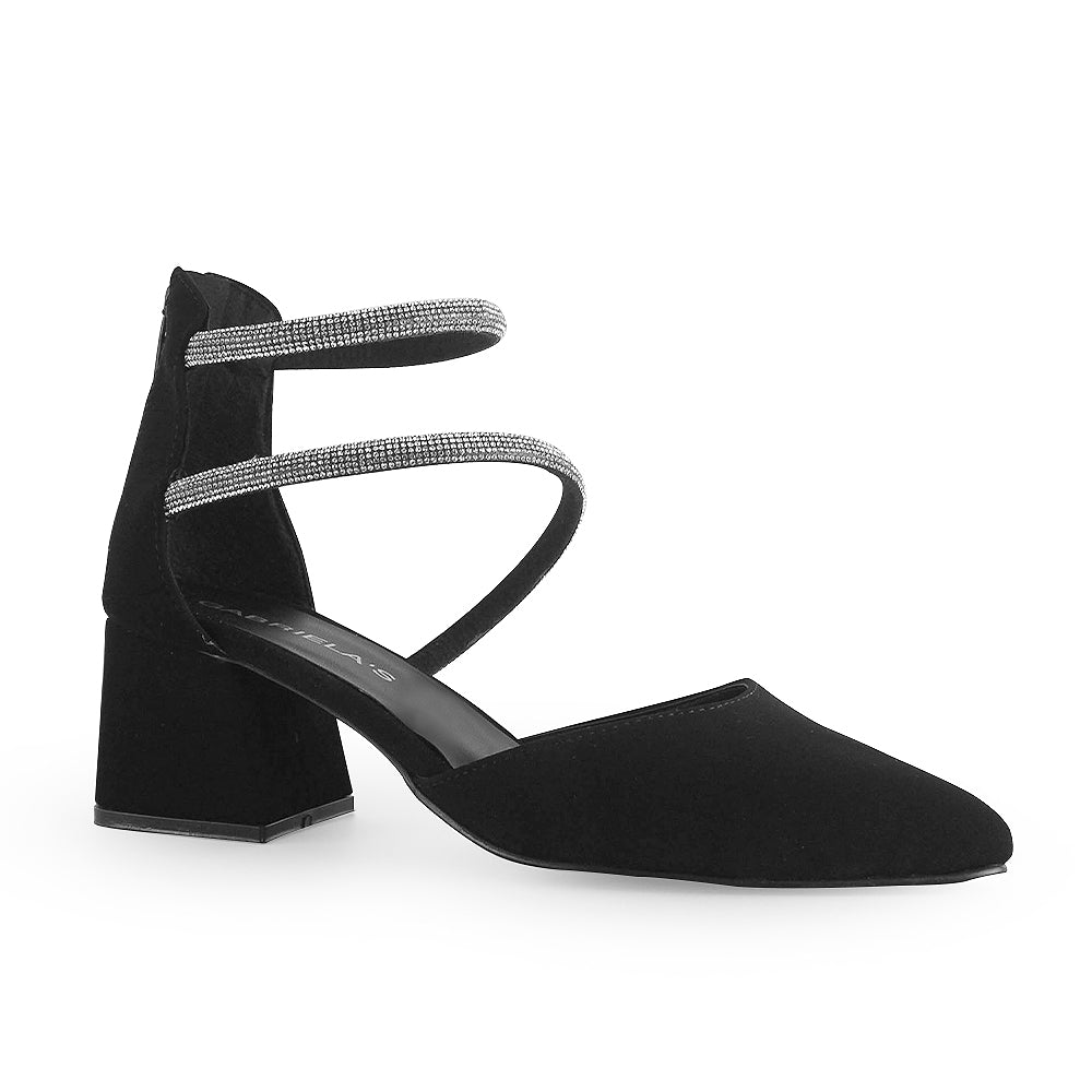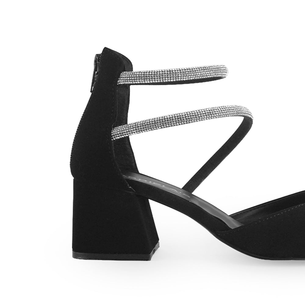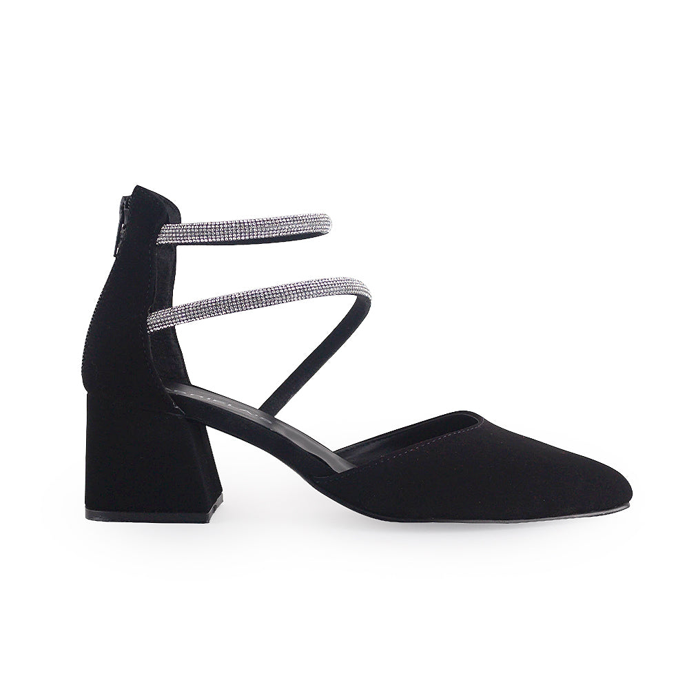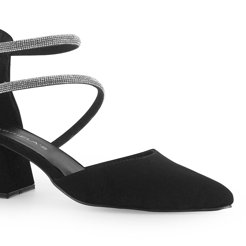 Zapatilla Negro Puntal Doble Tira Brillos Tacon Ancho Bajo Casual 3201232