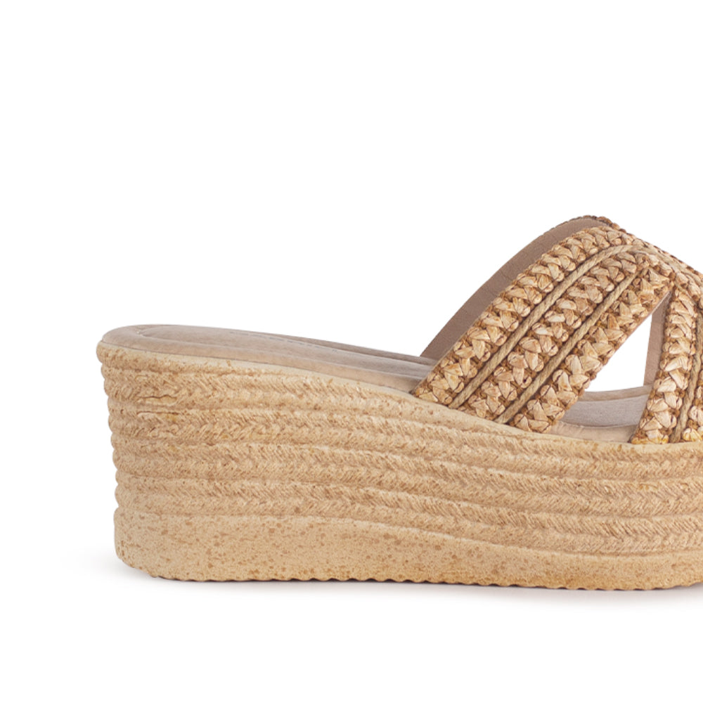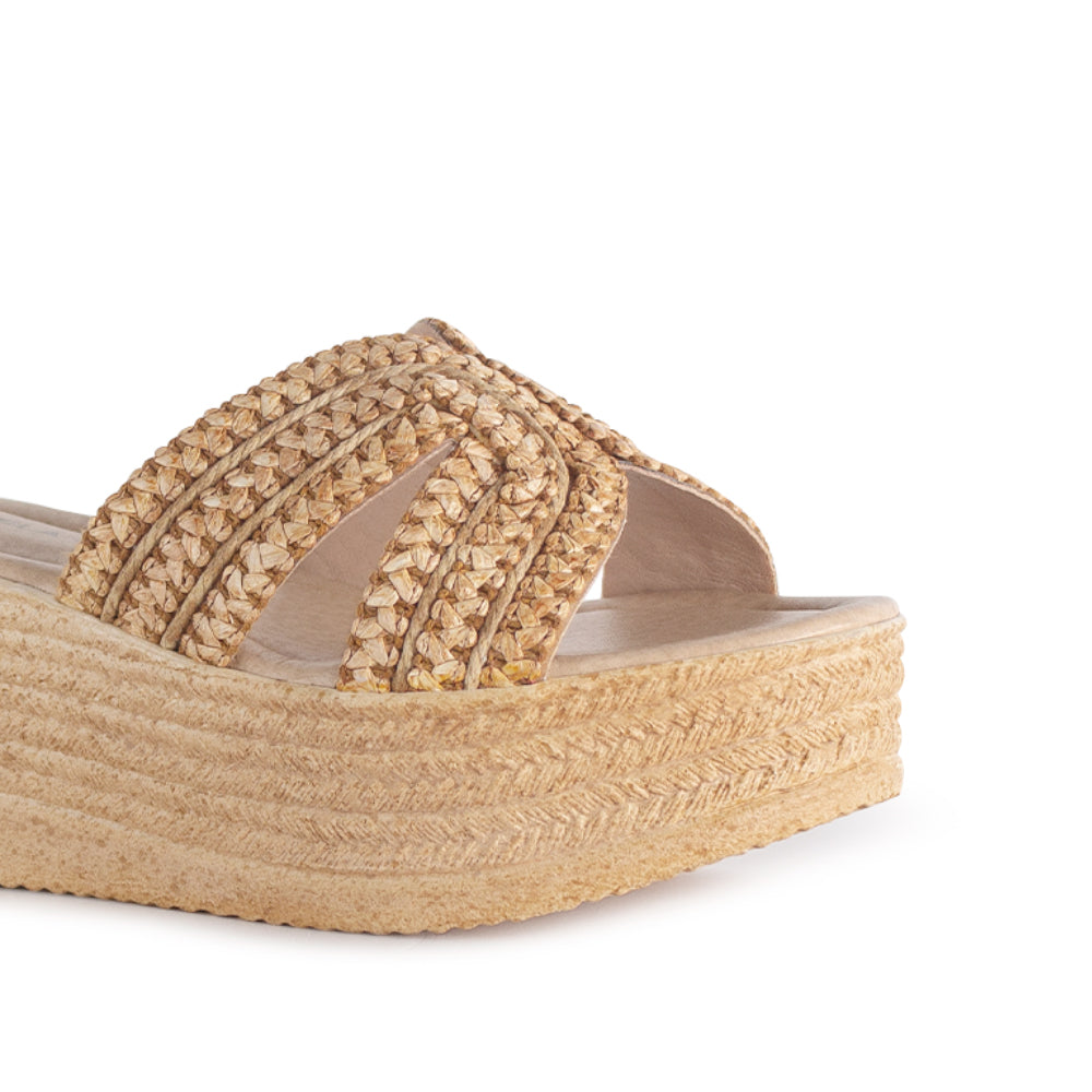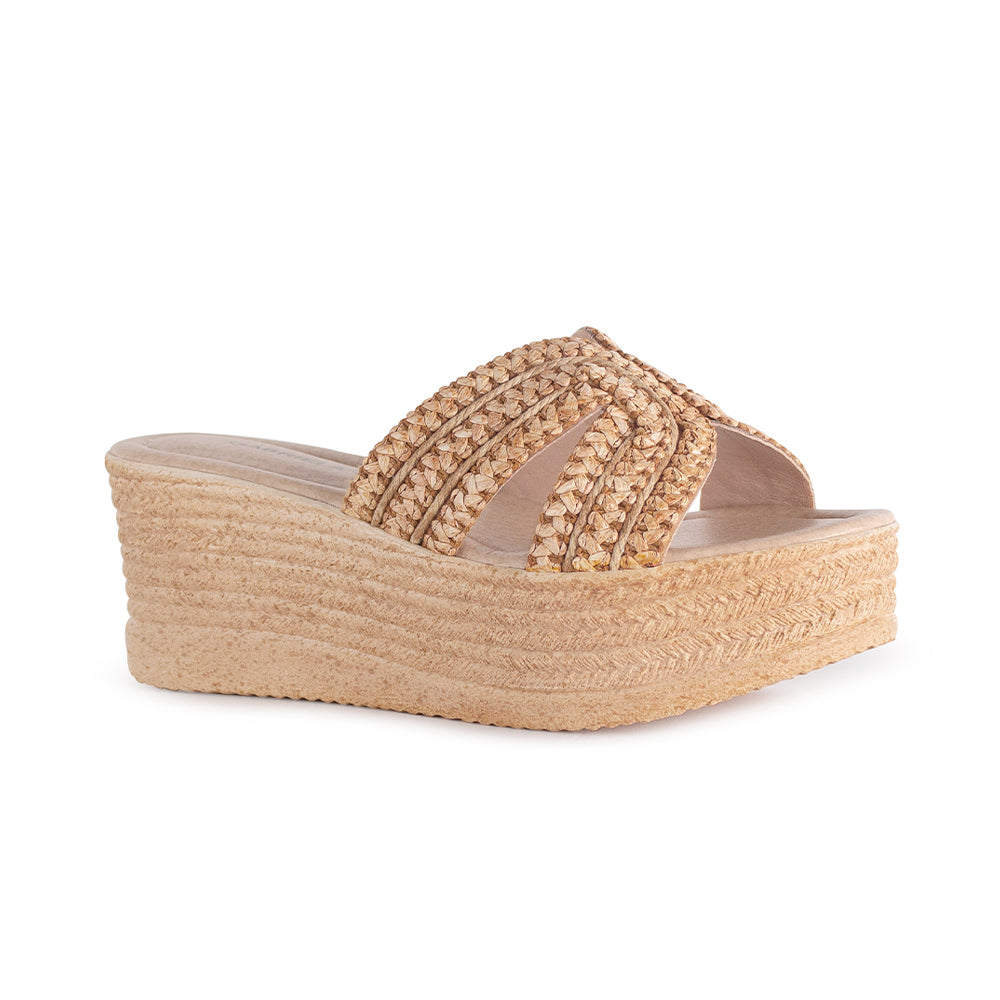 Sandalia Beige Dama Plataforma Tejido Moda Comoda Verano Casual 3201350