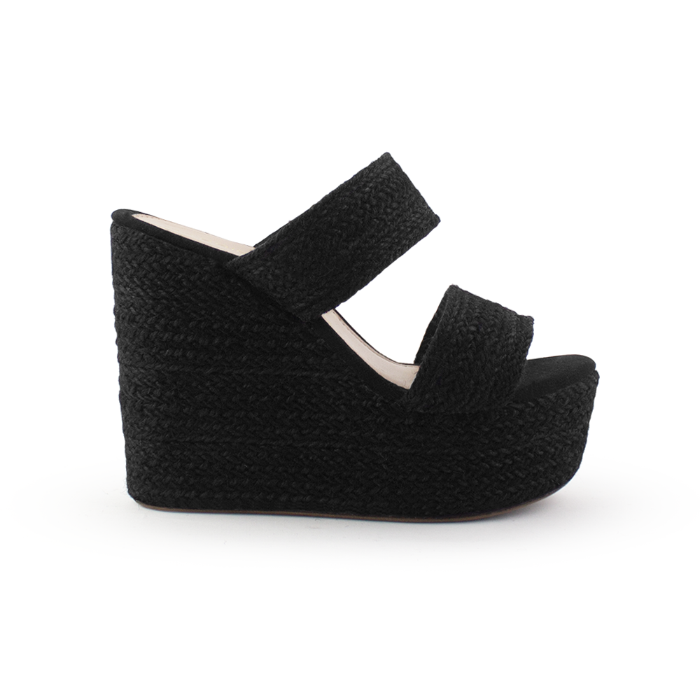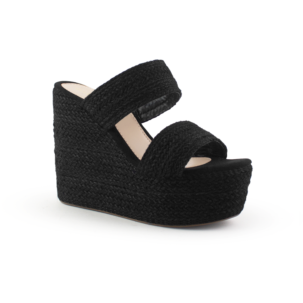 Alpargata Negro Mujer Yute Plataforma Alta Doble Tira 3360307