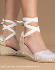 Alpargata Beige Dama Punta Cerrada Cordones Destalonado Casual 3402691