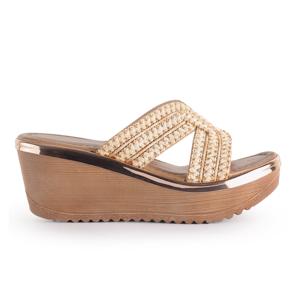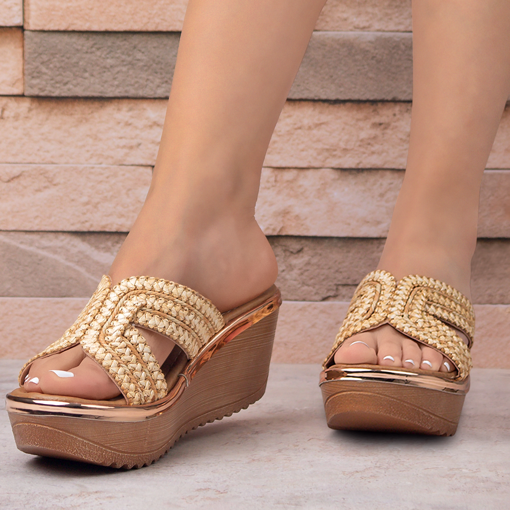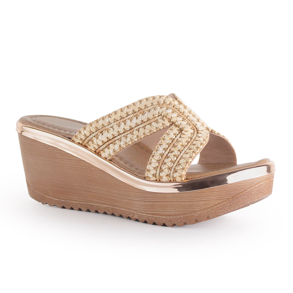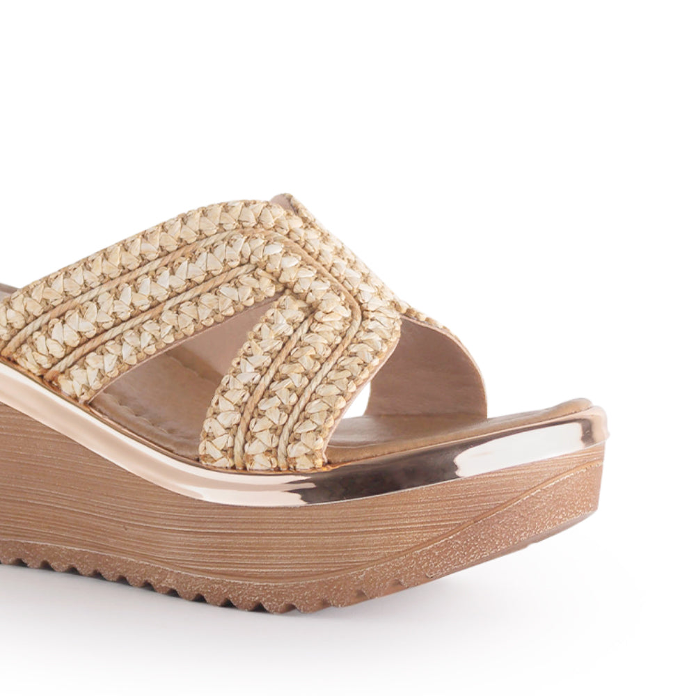Sandalias Beige Altas Moda Casual Tejidas Plataforma Elegante Dama 3402772