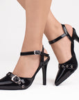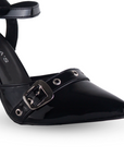 Zapatilla Negro Tacon Delgado Con Hebilla Elegante Mujer Casual 3402773