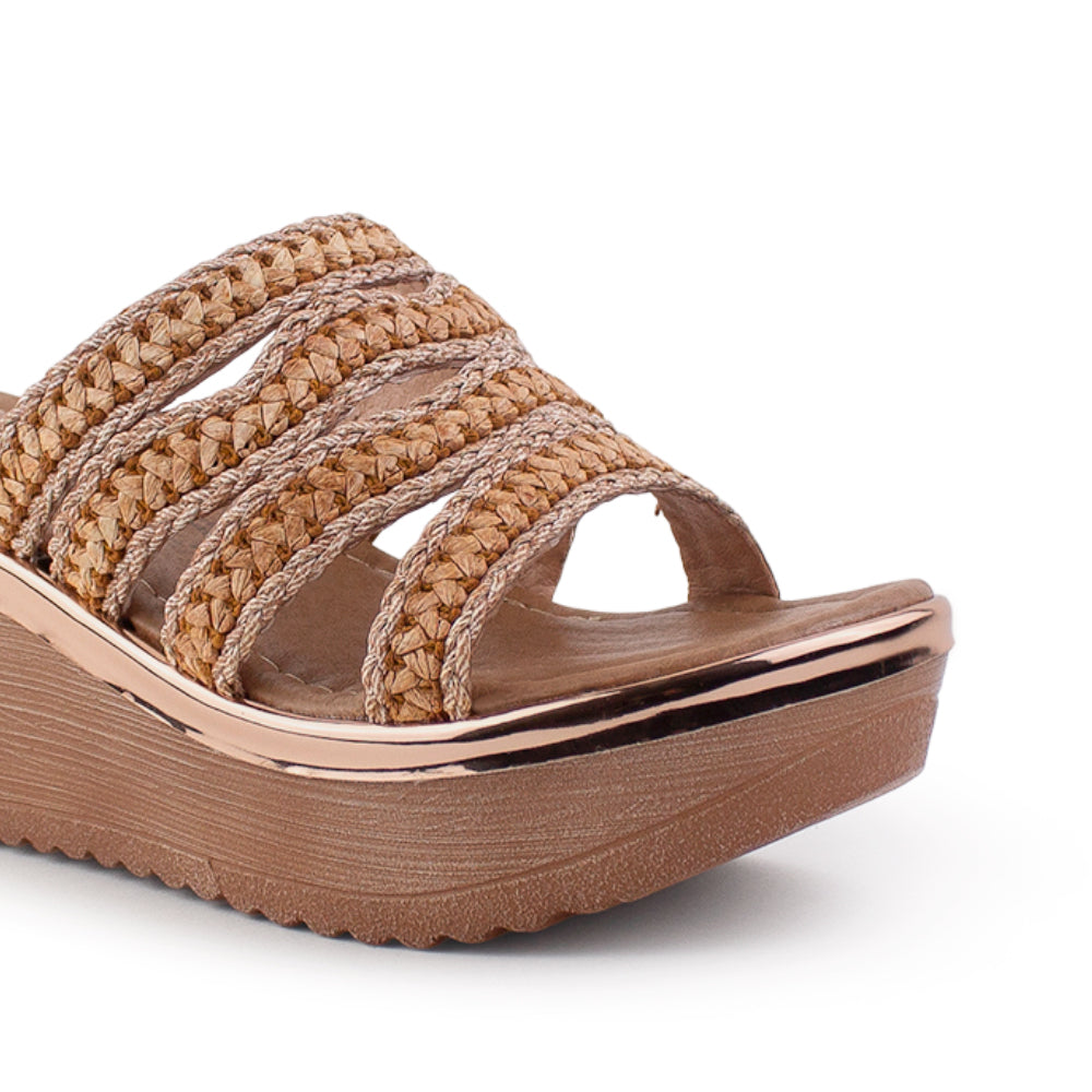 Sandalia Cafe De Plataforma Casual Mujer Tiras Cruzadas Tejidas Moda 3402784