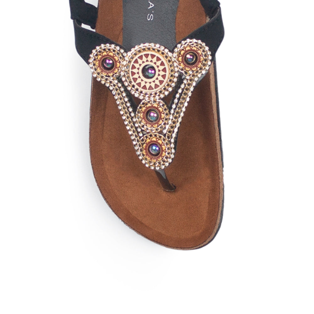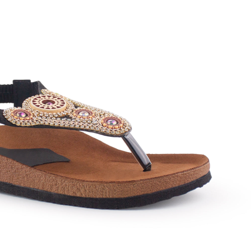 Sandalia Negro Playa Mujer Pata De Gallo Comoda Casual Pedreria 3402796