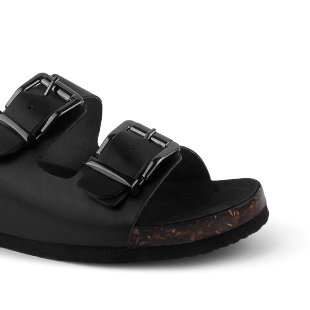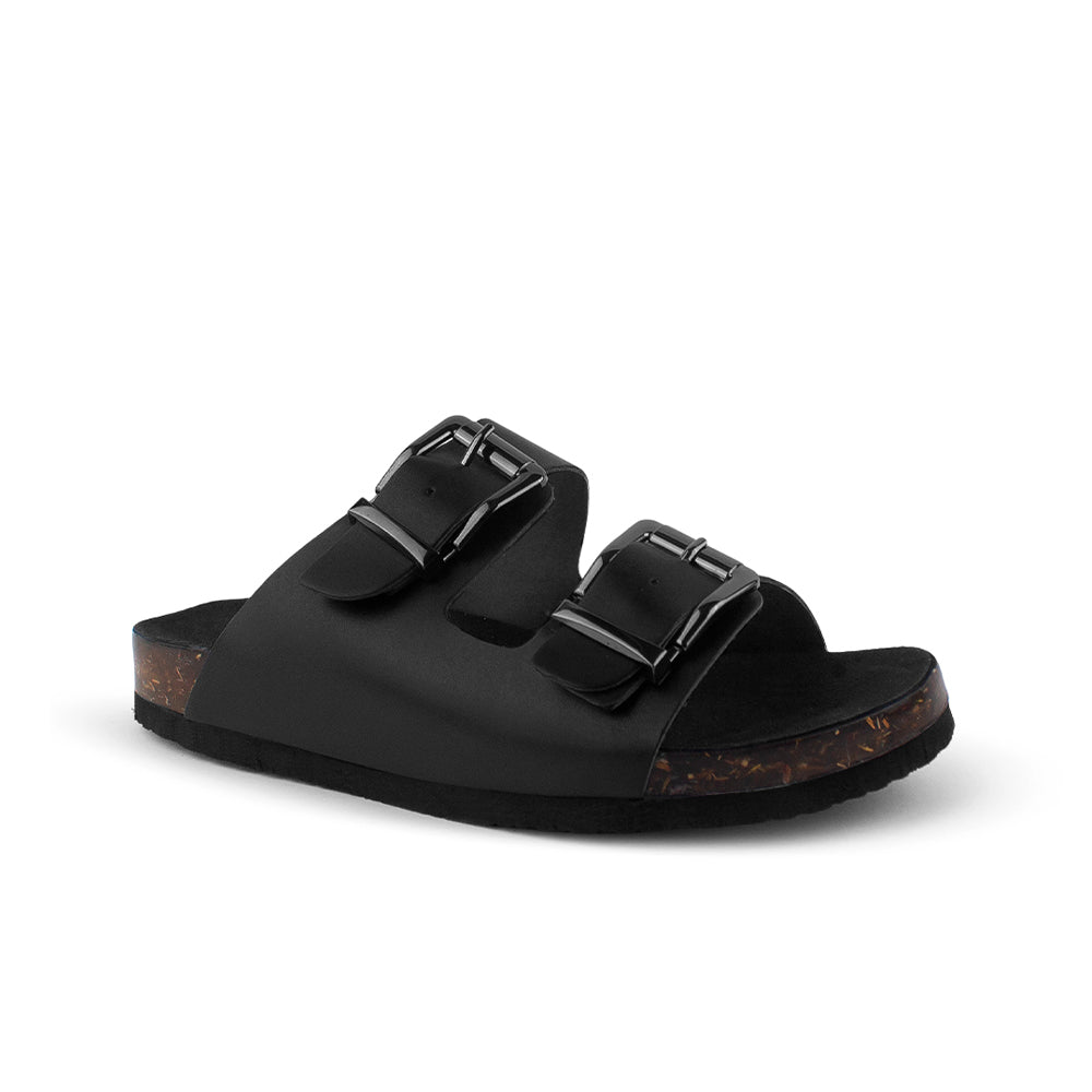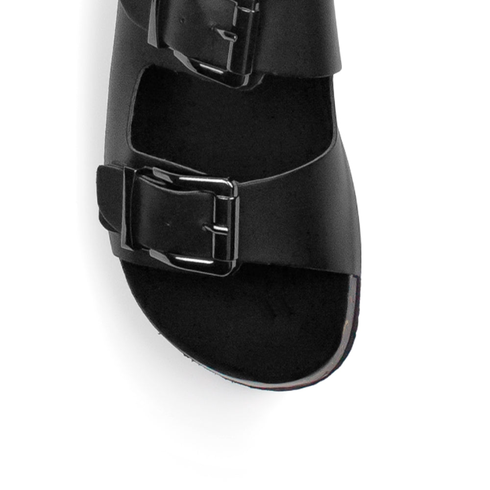 Sandalia Negro Piso Casual Doble Hebilla Cuadrada Moda Verano 3402813