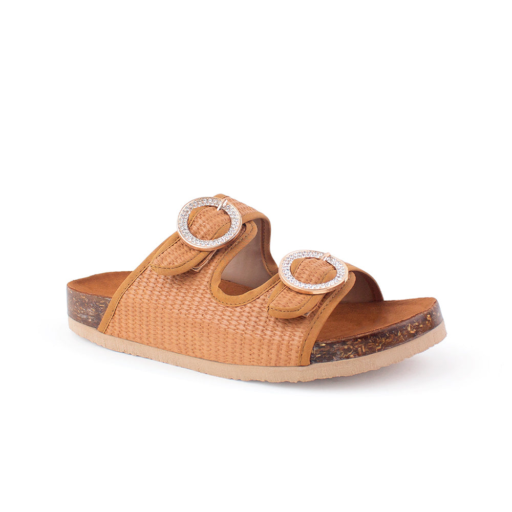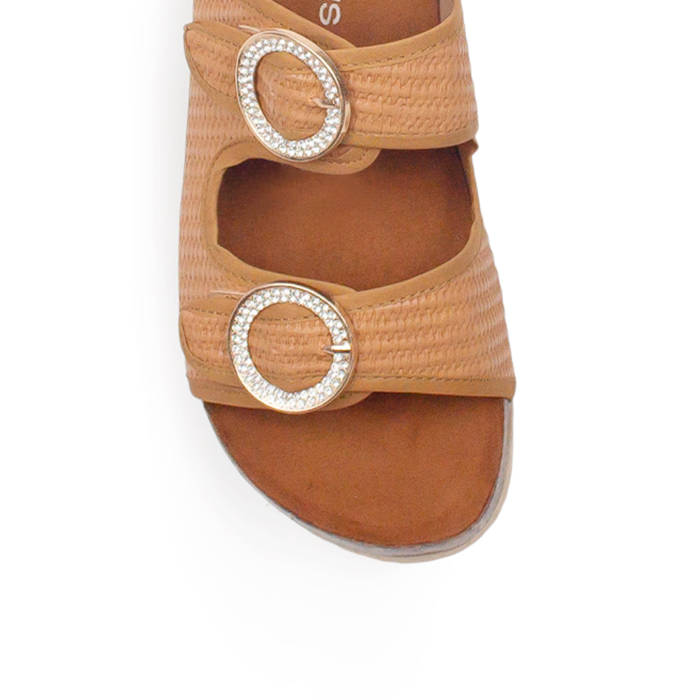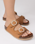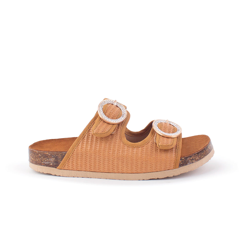 Sandalia Cafe Mujer Doble Tira Hebilla Redonda Moda Casual Verano 3402815