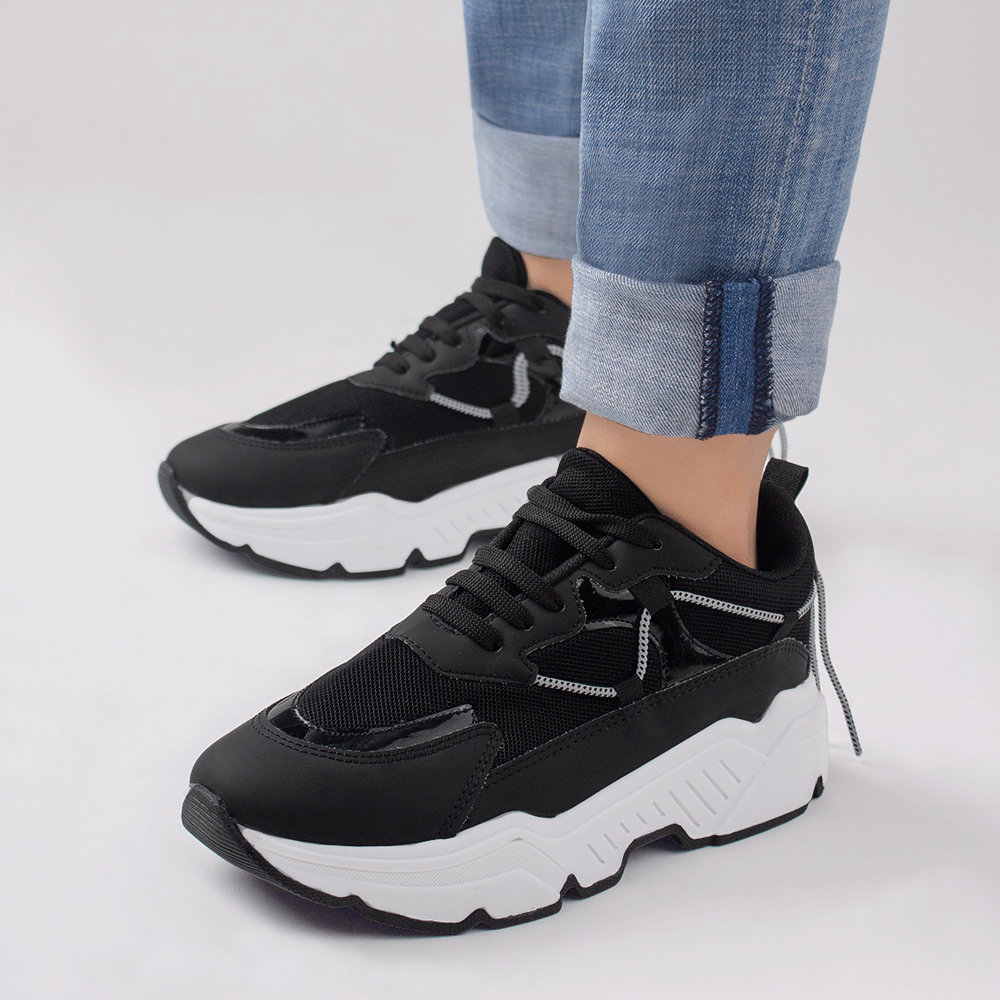 Tenis Negro Blanco Dama Plataforma Casual Moda Urbano Agujeta 3402827