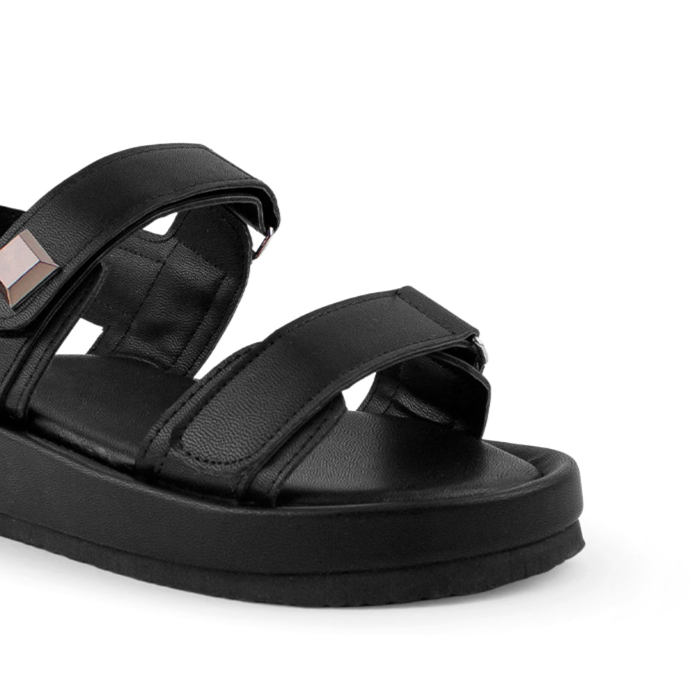 Sandalia Negro Mujer Casual Plana Doble Tira Comoda Moda Dama 3402838