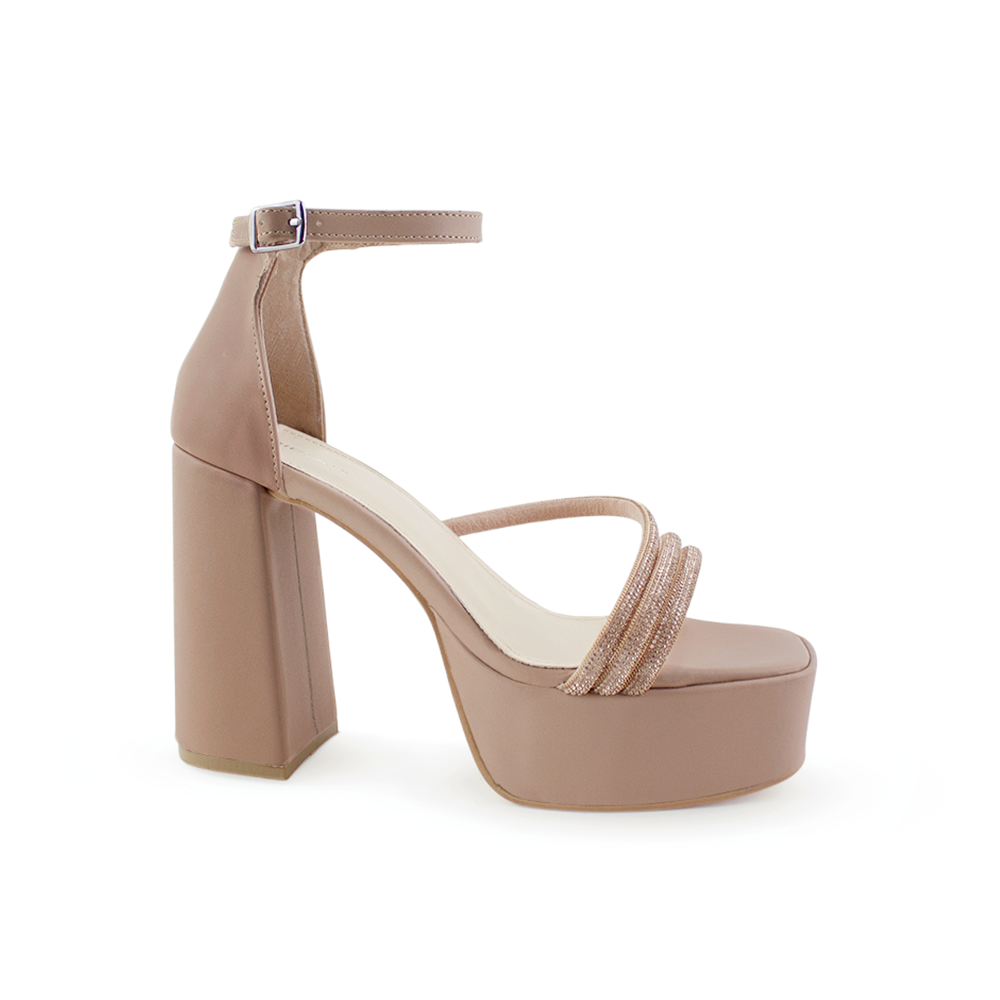 Zapatilla Maquillaje Oro Rosa Elegante Brillos Mujer Tacon Alto Punta Cuadrada 3402855