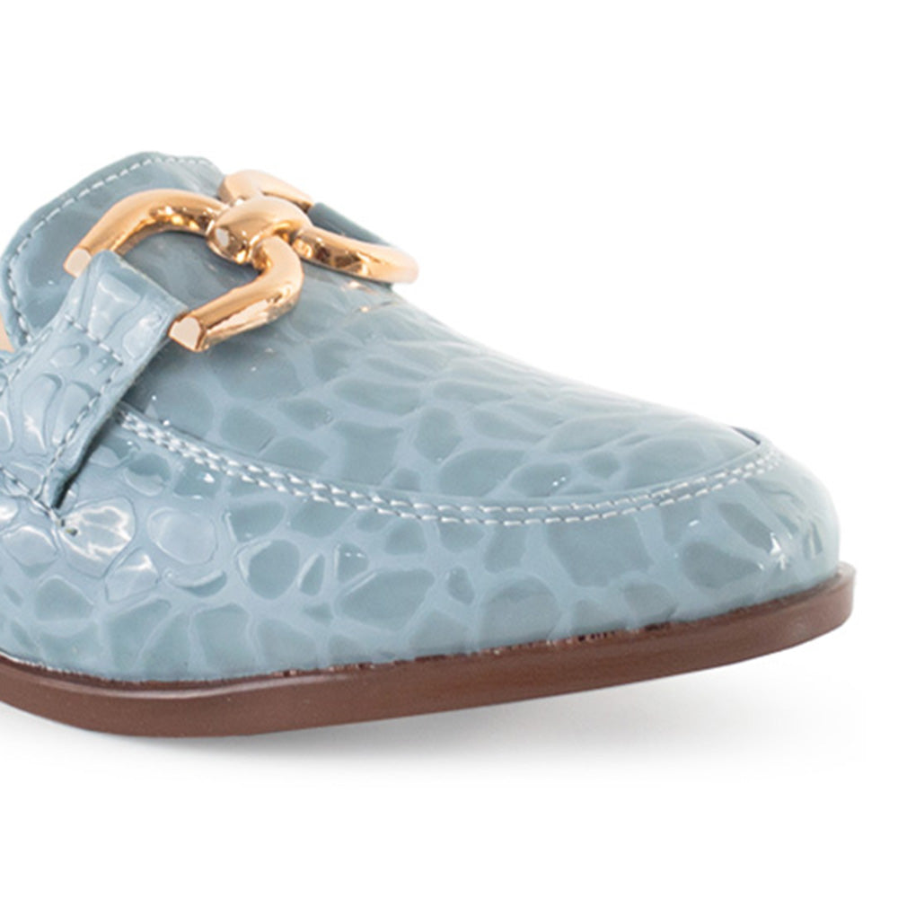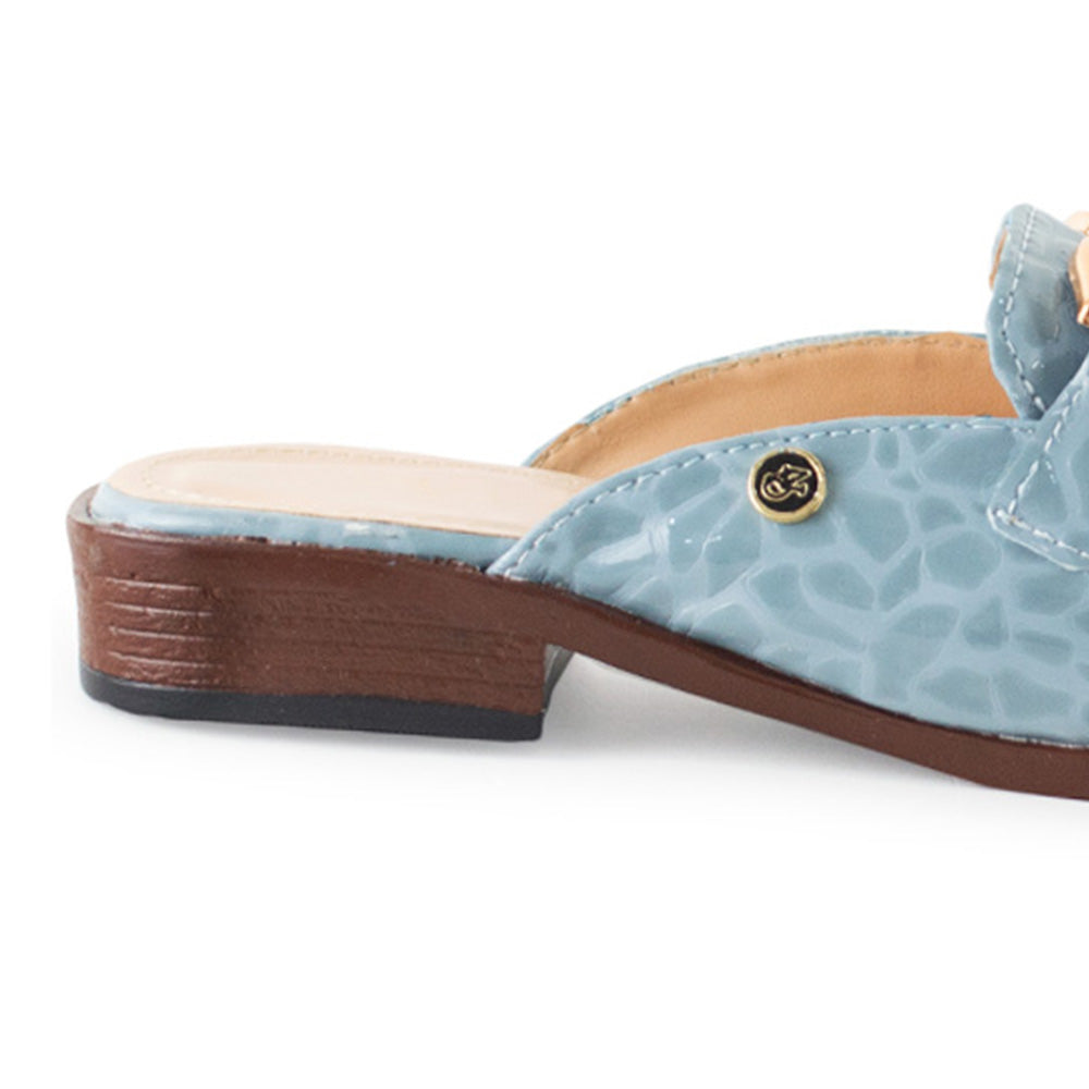 Mule Azul Casual Dama Textura Herraje Piso Moda Mujer 3510145