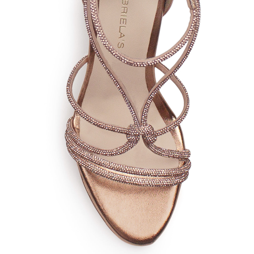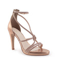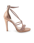 Zapatilla Oro Rosa Tacon Delgado Mujer Tiras Cruzadas Pedreria 4040677
