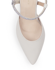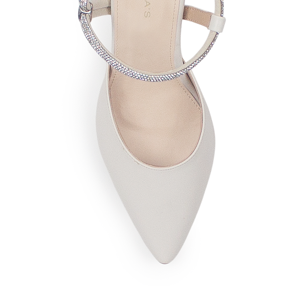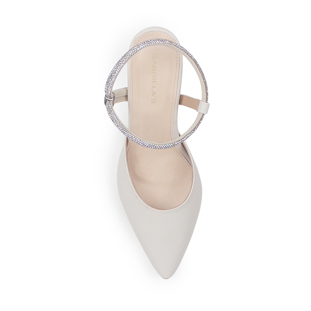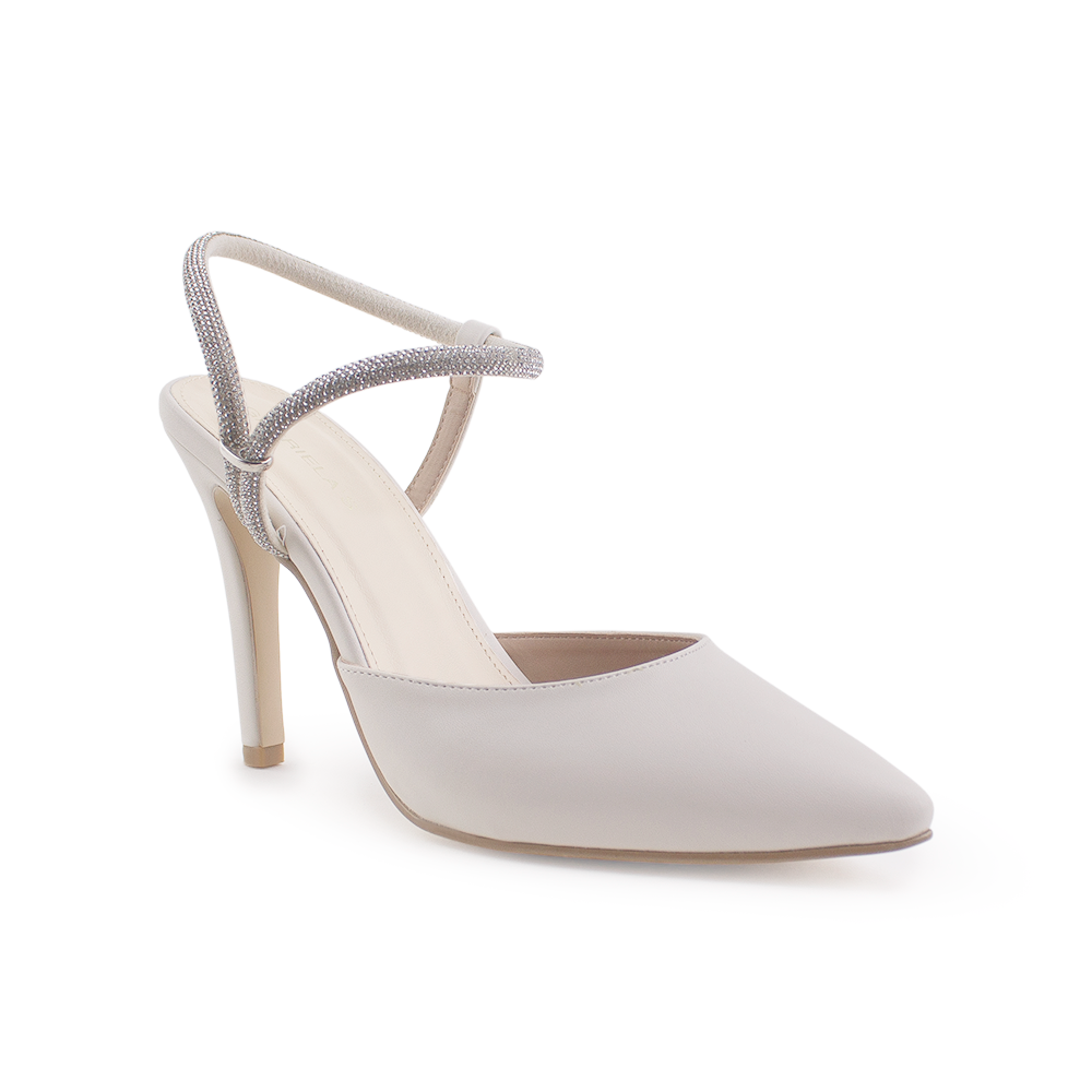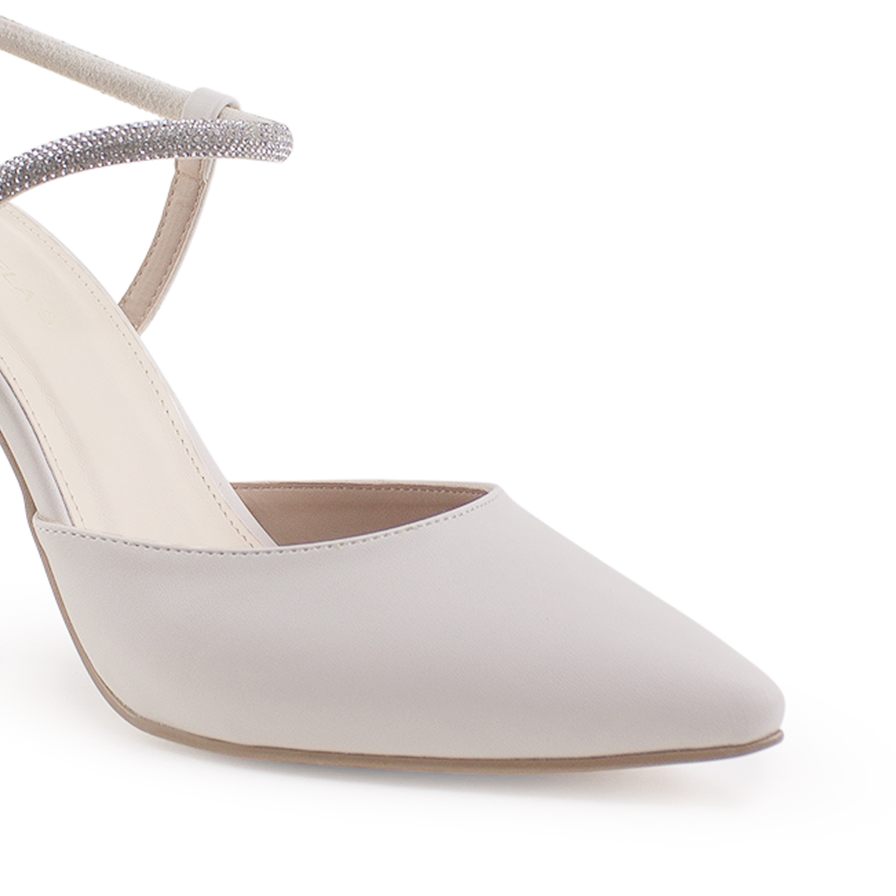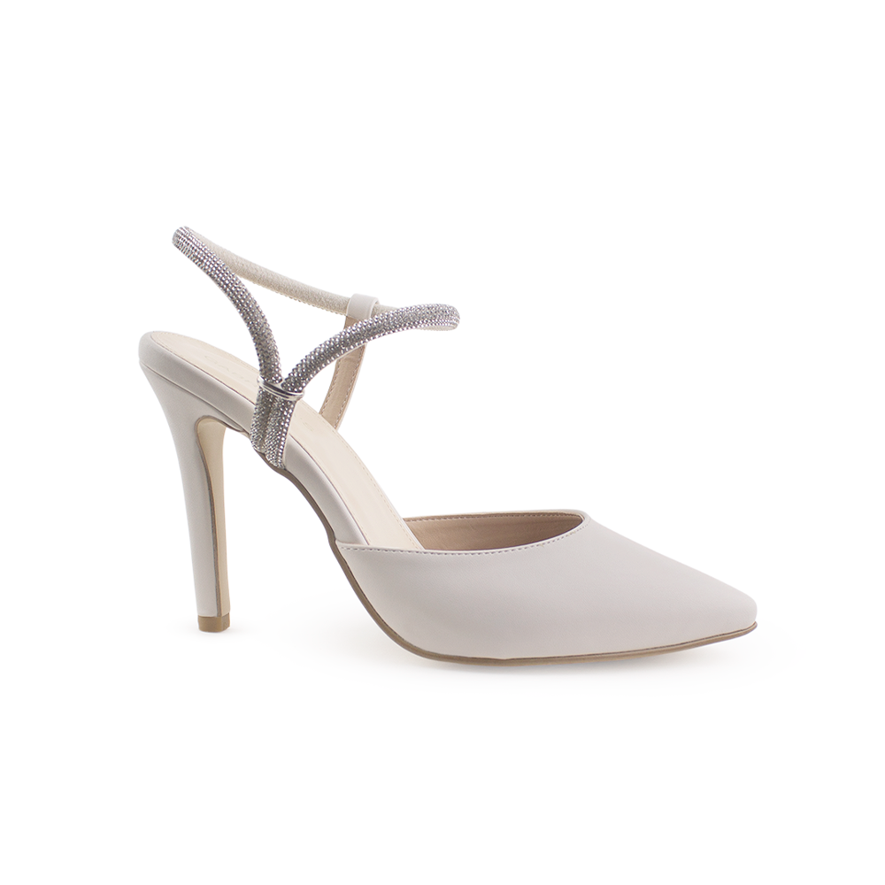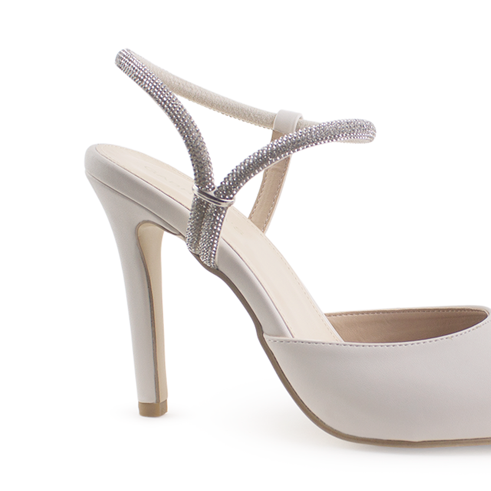 Zapatilla Beige Plata Dama Punta Cerrada Tacón Elegante Pulsera Pedrería 4040733