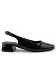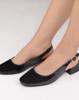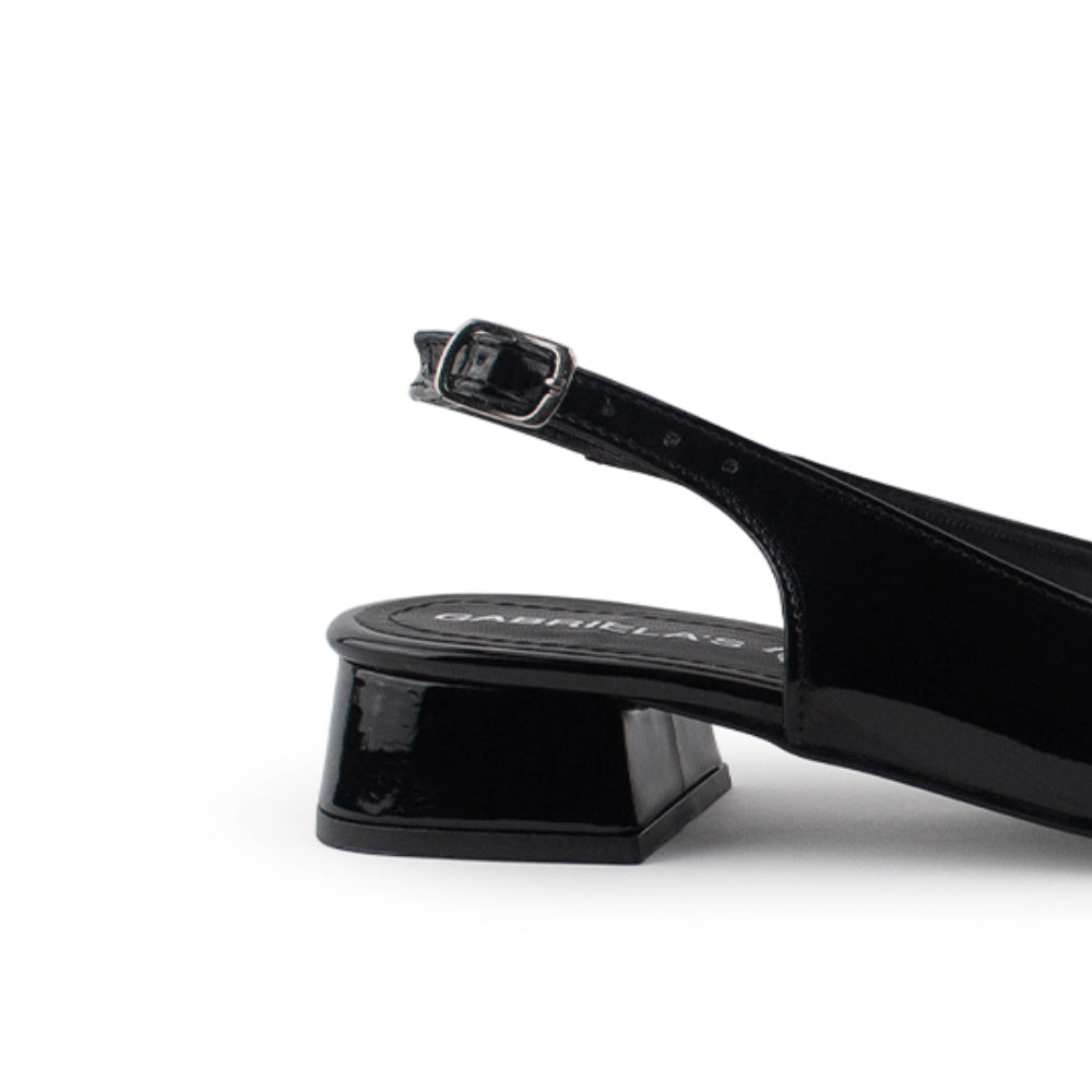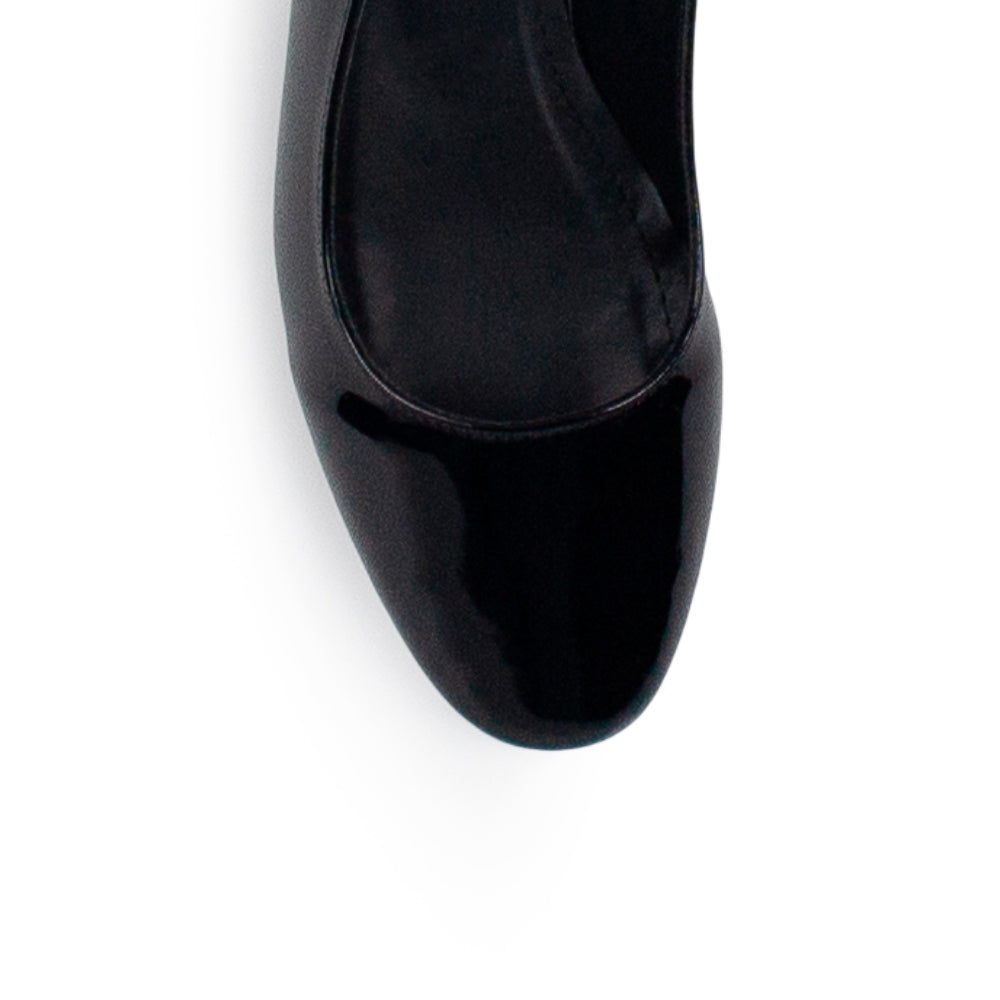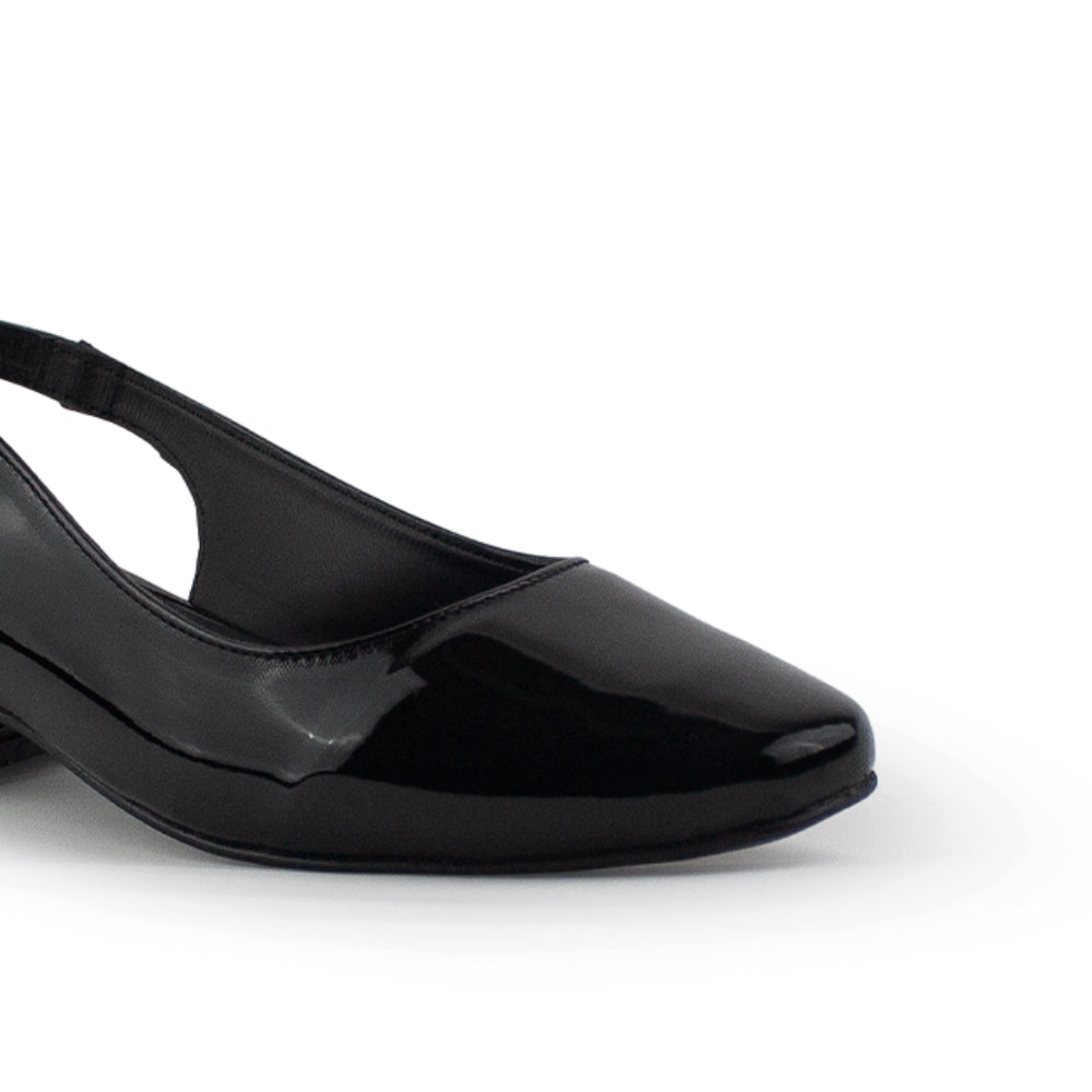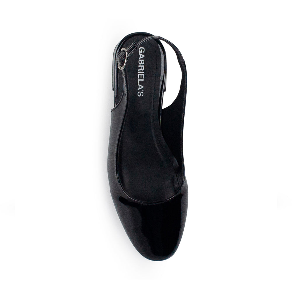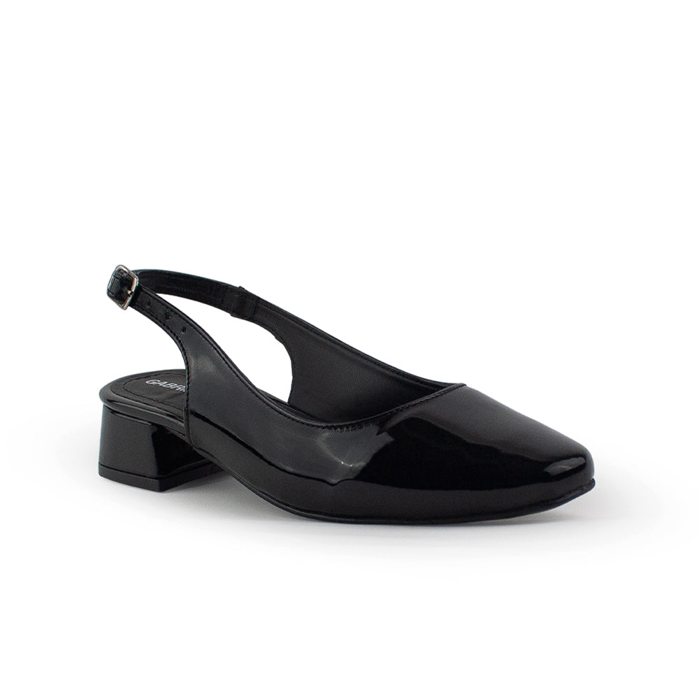 Zapatilla Negro Charol Dama Tacon Bajo Ajuste Hebilla Destalonada Casual 4070064