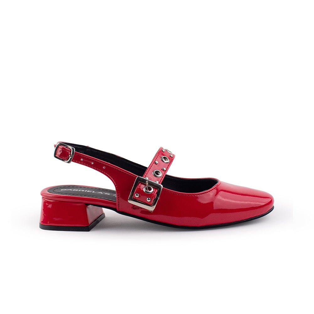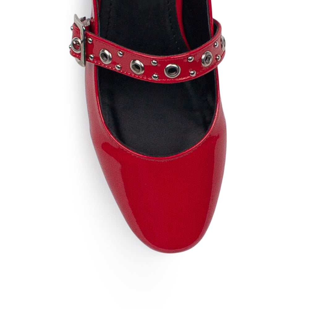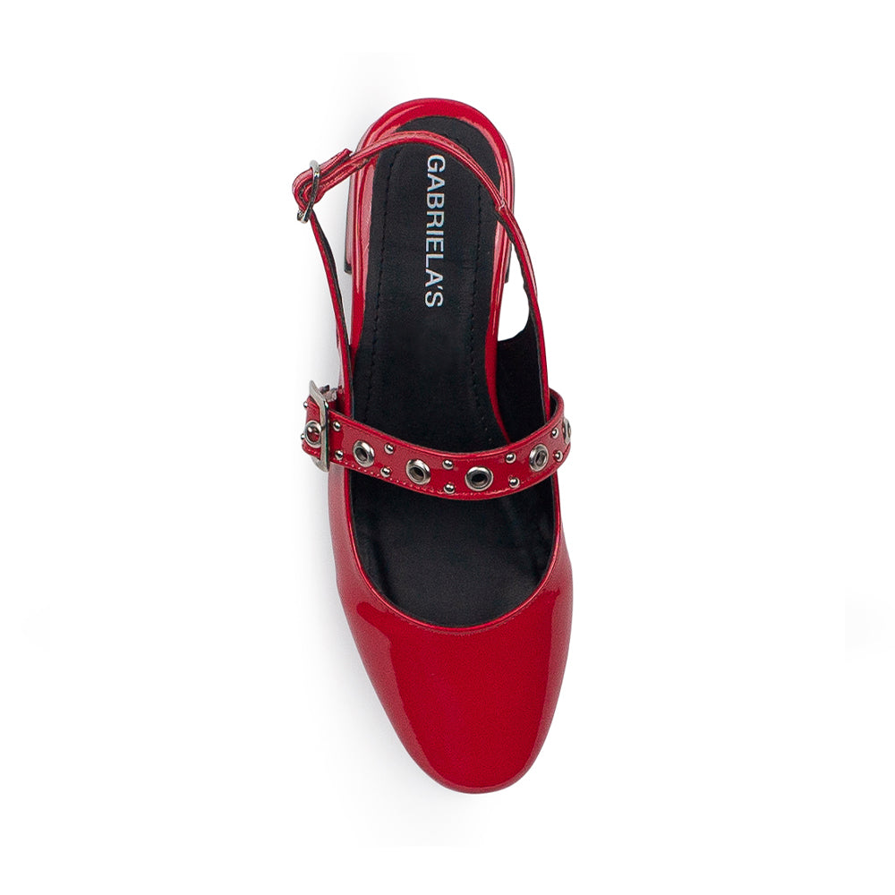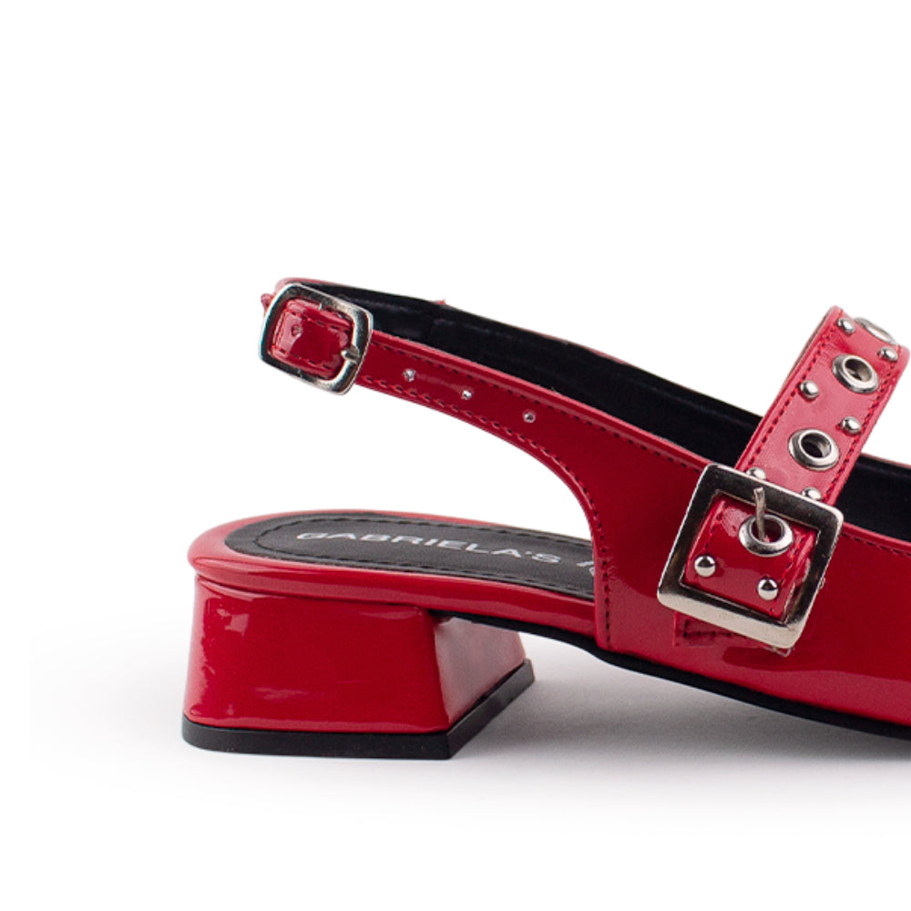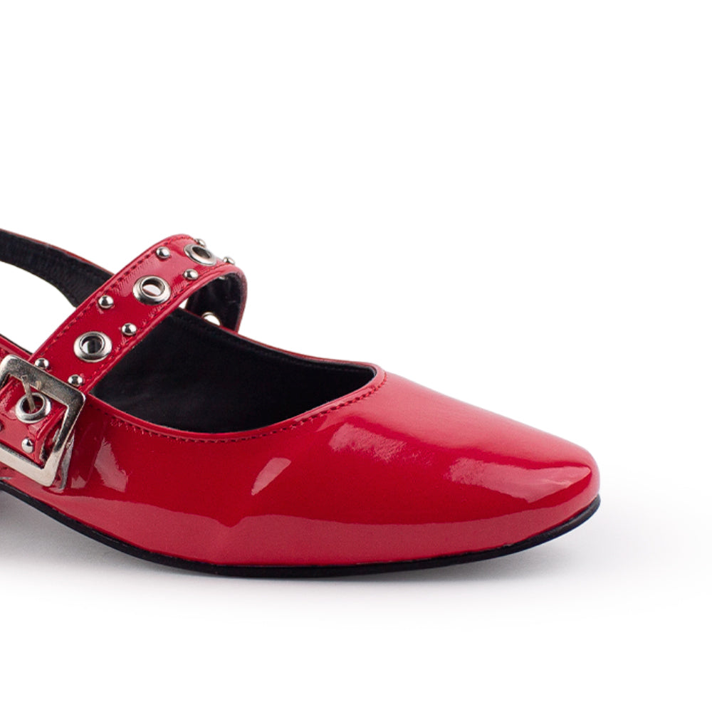 Zapatilla Rojo Estoperoles Ajuste Hebilla Casual Moda Mujer Tacon Bajo 4070065