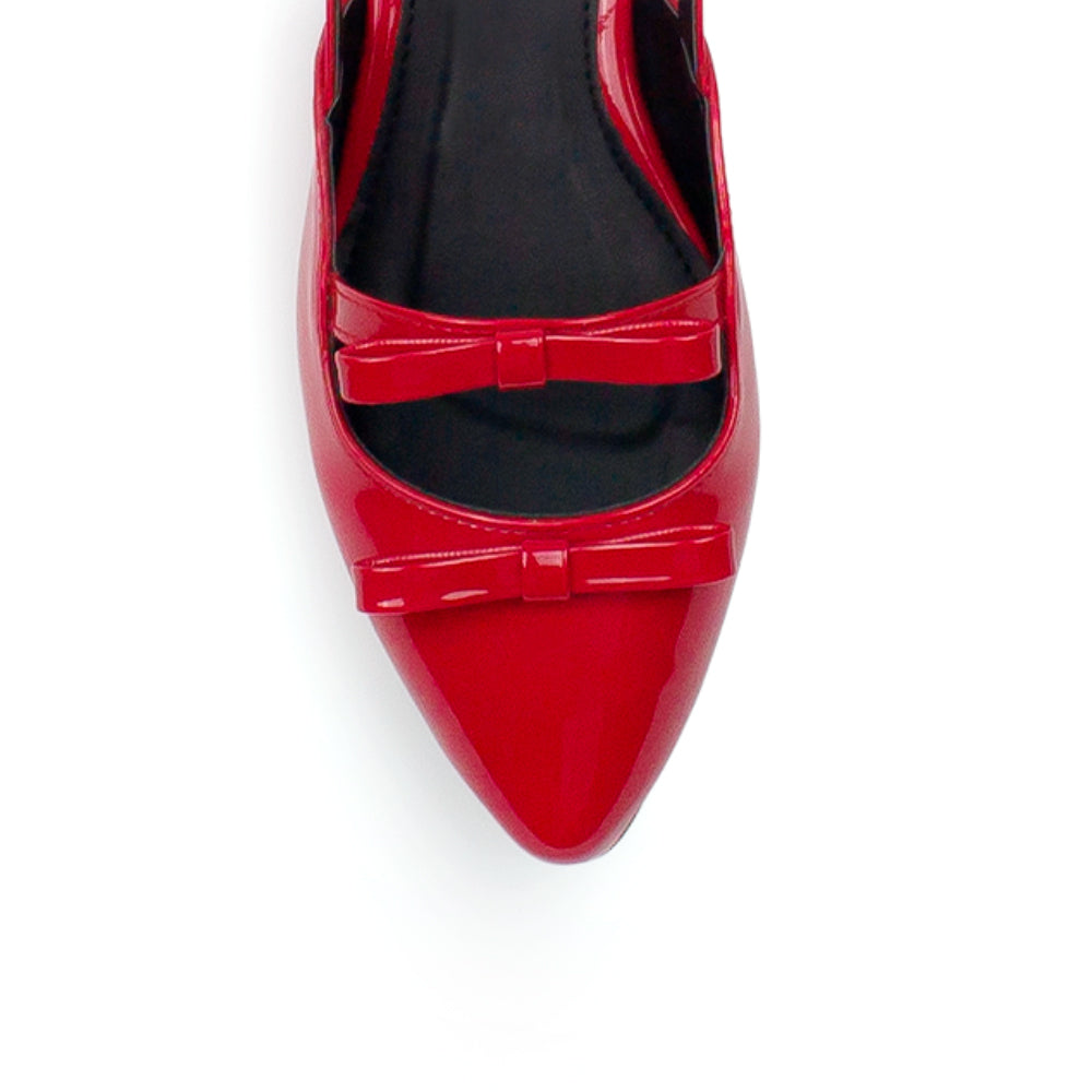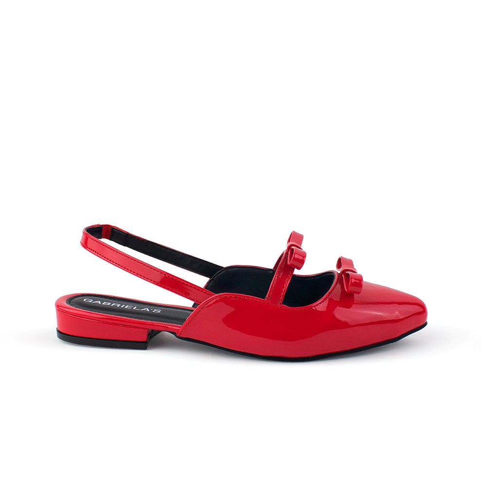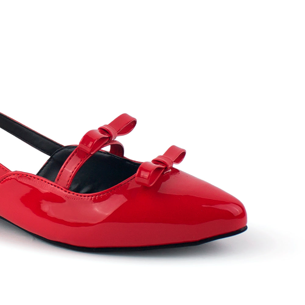 Balerina Rojo Talon Descubierto Moños Casual Moda Zapatos Mujer 4070073