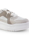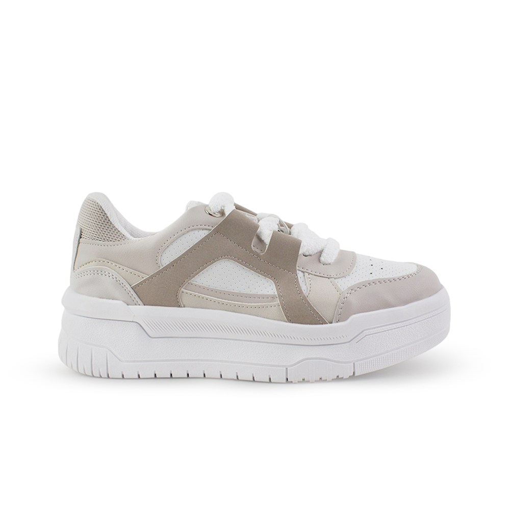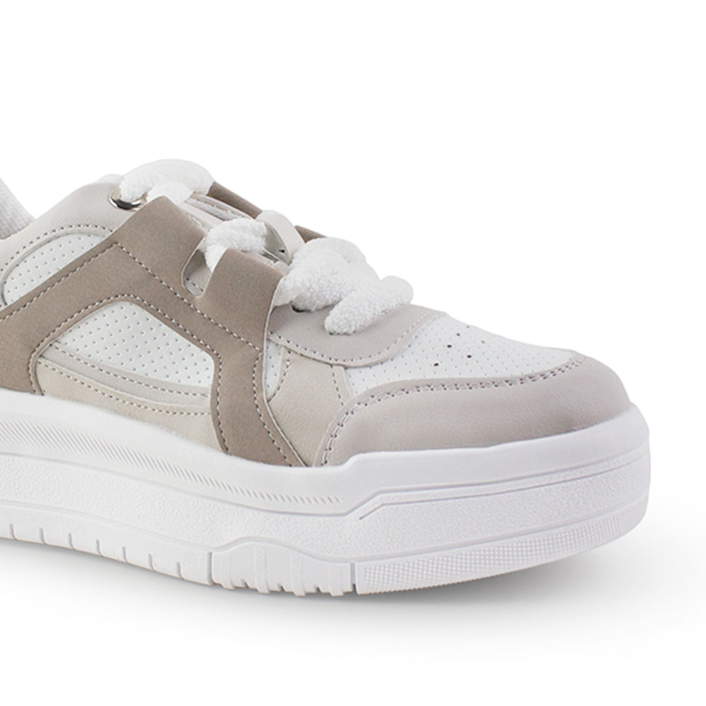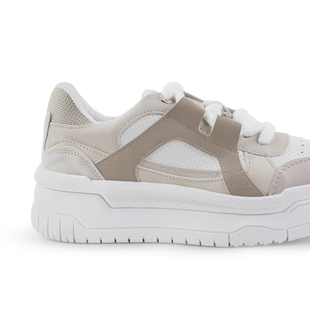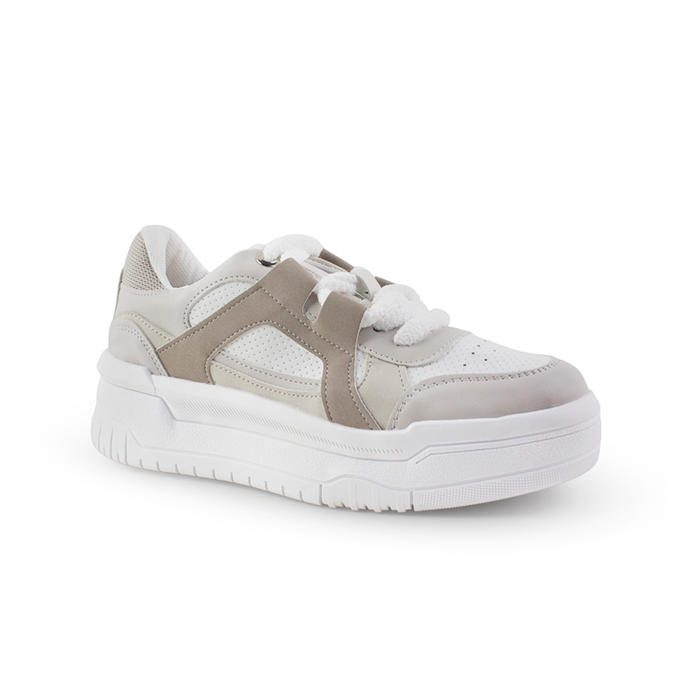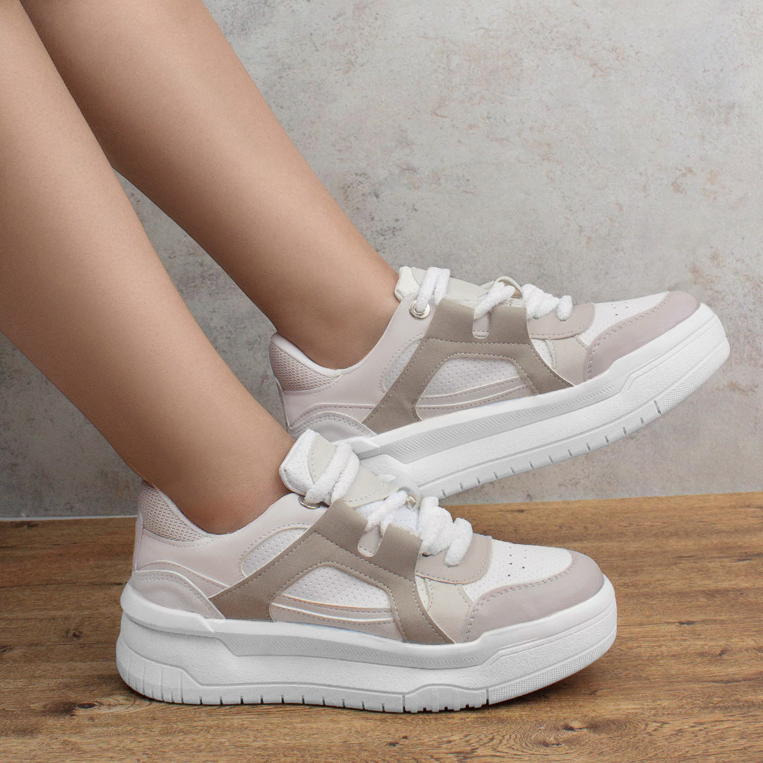 Tenis Blanco Beige Mujer Urbano Casual Cordones Moda Comodo Suela Gruesa 4370174