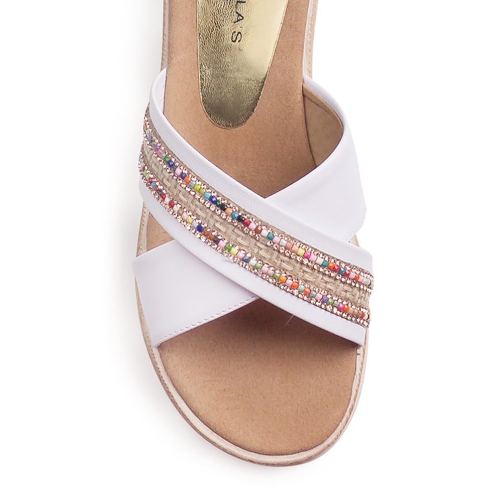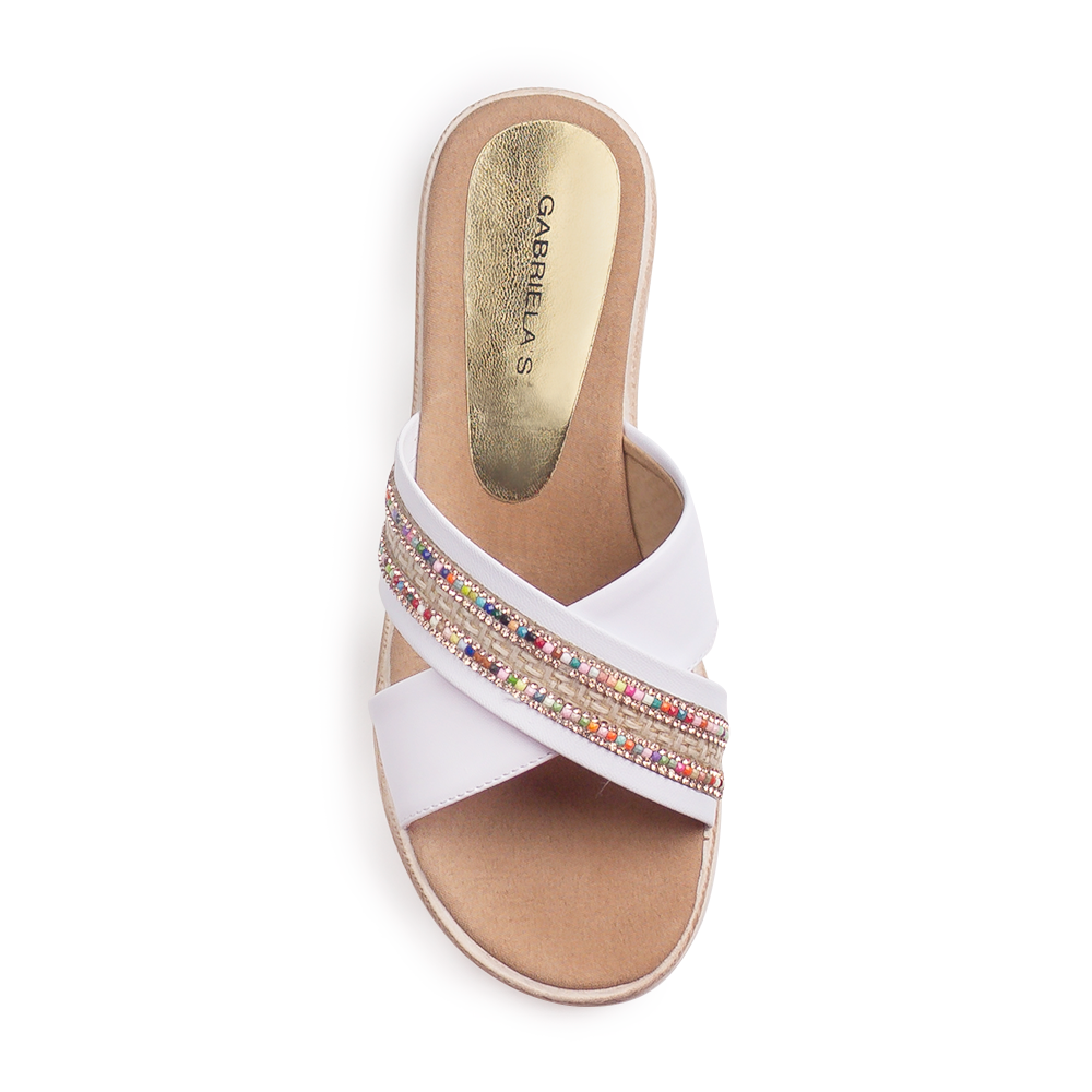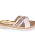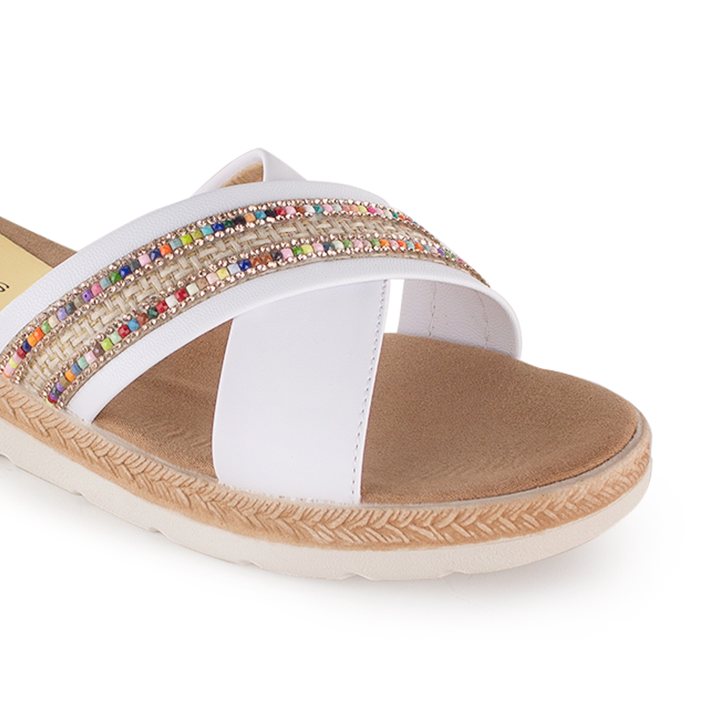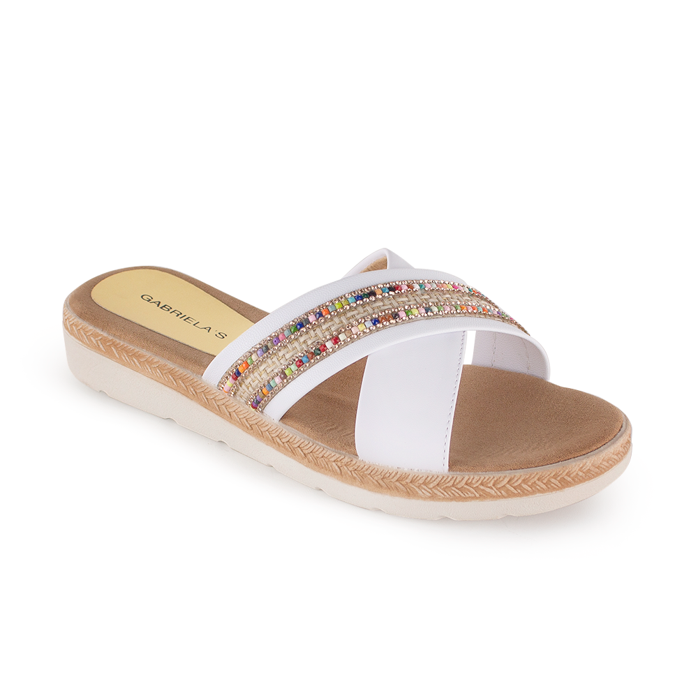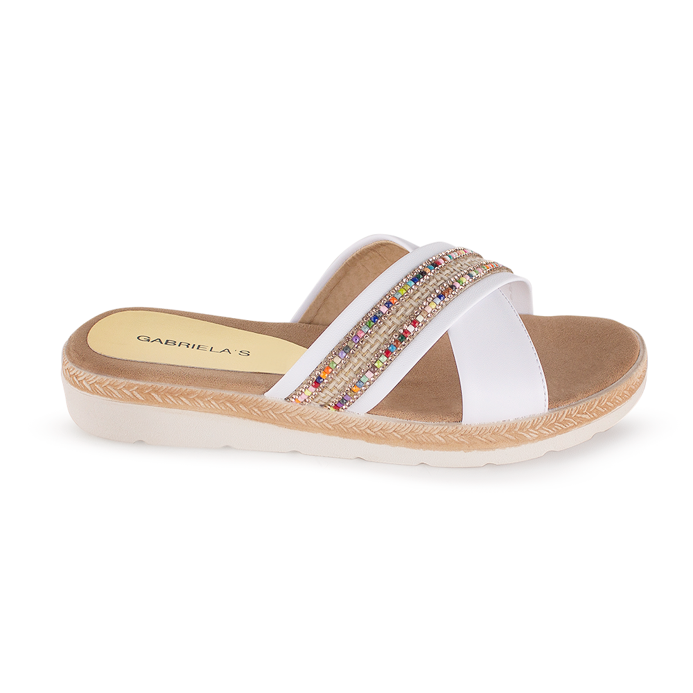 Sandalias Blanco Planas Mujer Comodas Modernas Detalles Brillantes 4500140