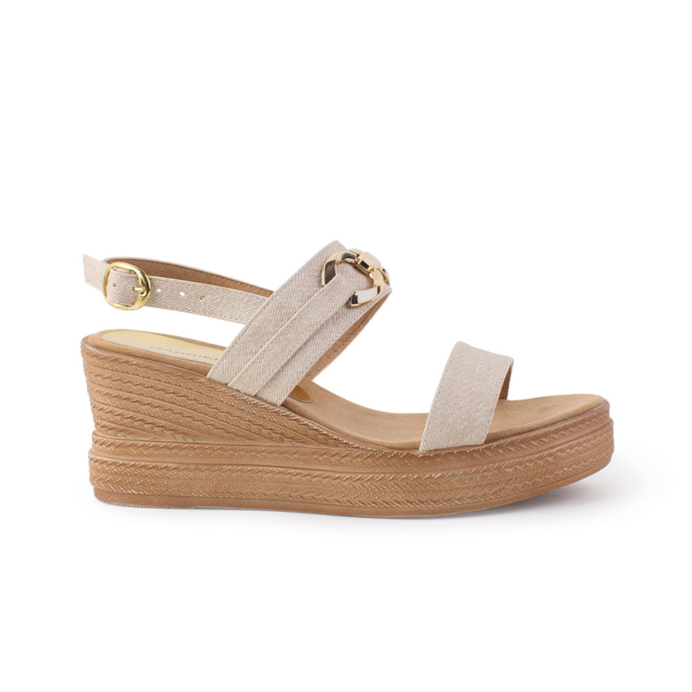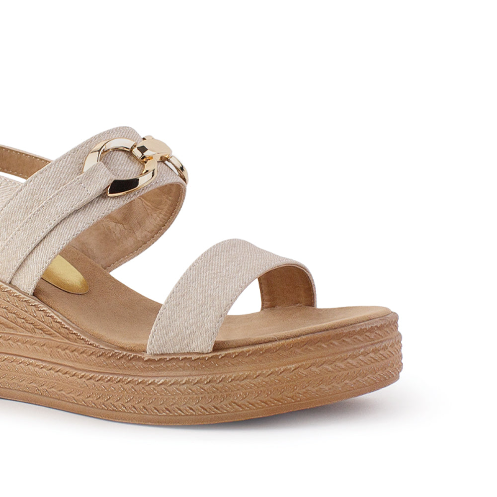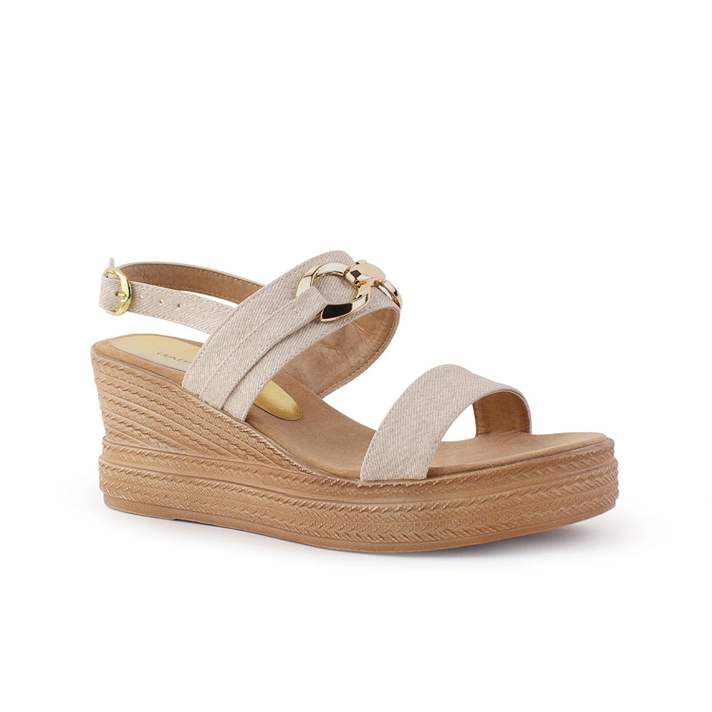 Sandalia Beige Plataforma Alta Mujer Hebilla Doble Correa Casual 4500167