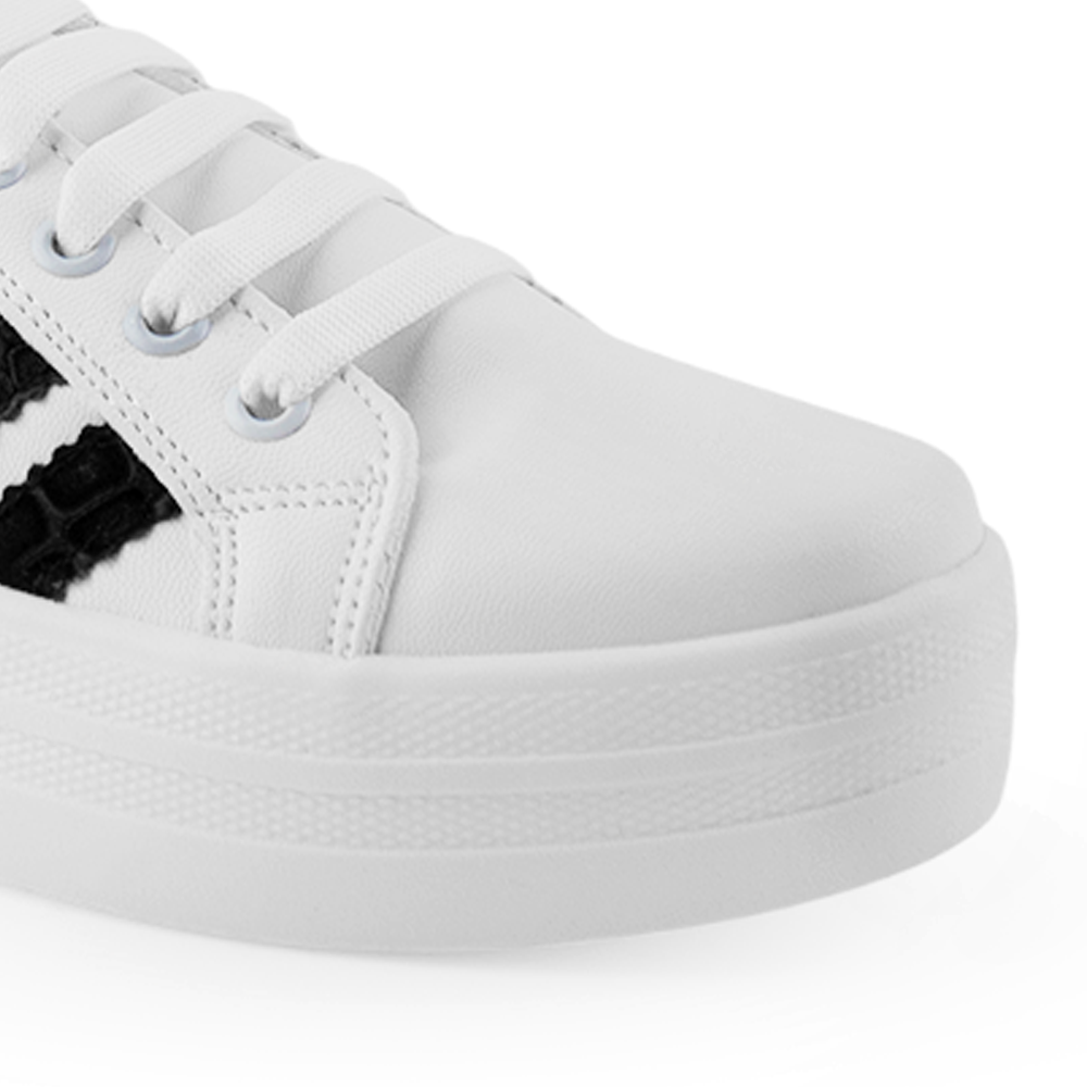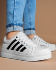 Tenis Blanco Negro Casual Dama Moda Franjas Basico Urbano 4820012