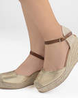 Alpargatas Oro Dama Plataforma Baja Punta Yute Pulsera 4870020