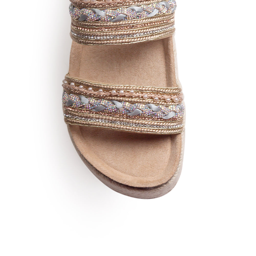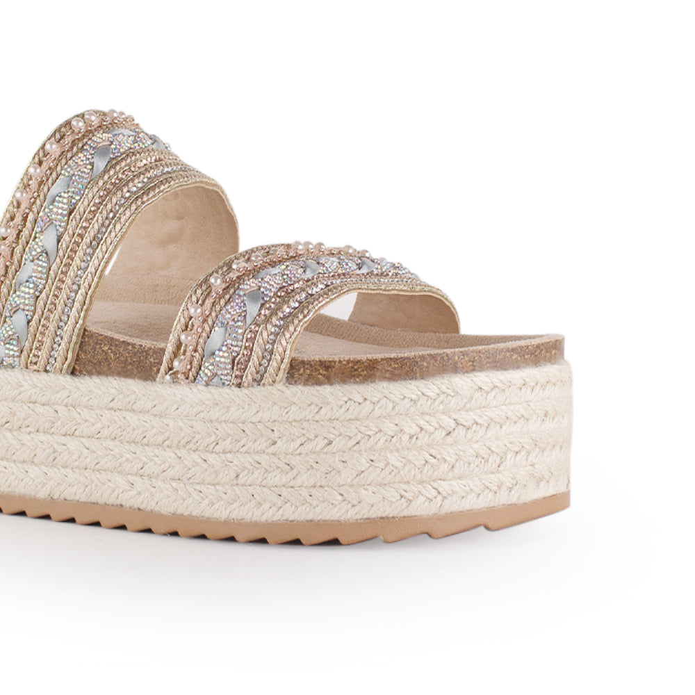 Alpargata Beige Plataforma Yute Alta Doble Tira Comoda Casual Dama 4900002