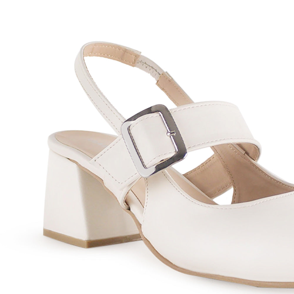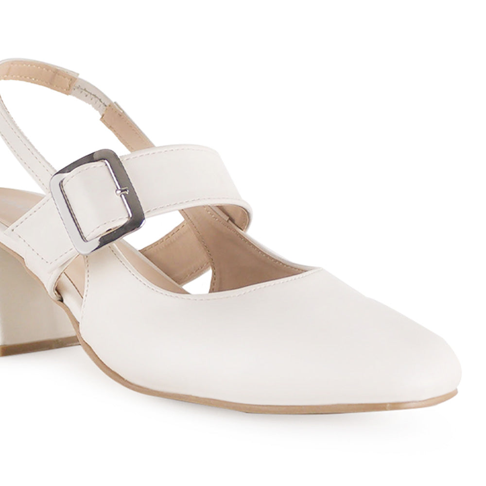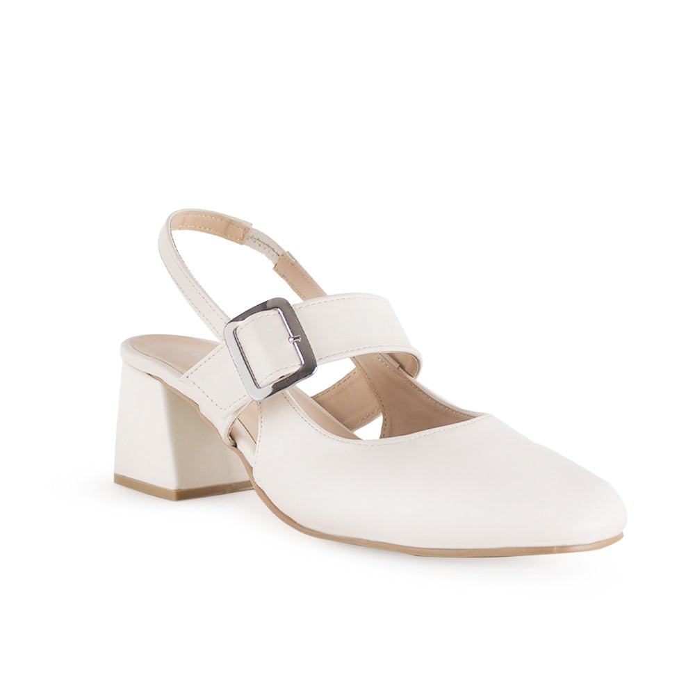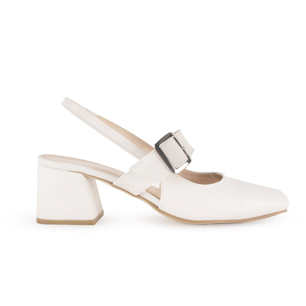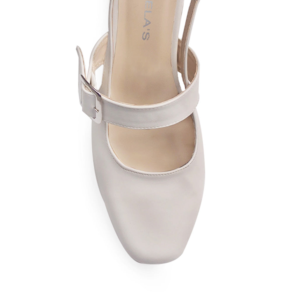 Zapatilla Beige Tacon Mujer Casual Hebilla Moda Punta Cerrada Dama4920001